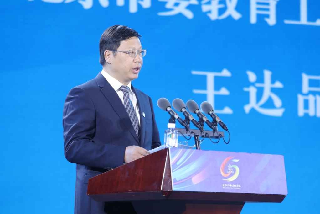 王达品代表市教育两委向学校全体师生员工和广大校友表示热烈的祝贺。他在讲话中指出,北京电子科技职业学院建校65年来,秉承“求实、创新、厚德、重艺”的优良传统,培养了一大批高素质技术技能人才和能工巧匠,为推动首都经济社会发展作出了重要贡献。他强调,作为首都职业教育的排头兵,北京电子科技职业学院要继续模范落实好市委提出的“当标杆、作示范、走在前、做表率”要求,坚定融入新时代首都发展大局,在服务首都高质量发展中实现自身高质量发展,走出北电科特色鲜明的高质量发展之路。就如何实现学校高质量发展,王达品提出四点要求。一是把“讲政治”作为第一要求,加强党对学校工作的全面领导;二是把“育匠人”作为根本任务,着力培养高素质技术技能人才;三是把“求发展”作为中心工作,加快建设高水平的技能型大学;四是把“建新功”作为努力方向,提高服务新时代首都发展能力。