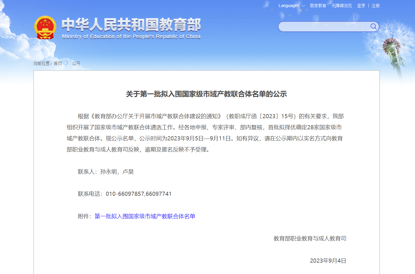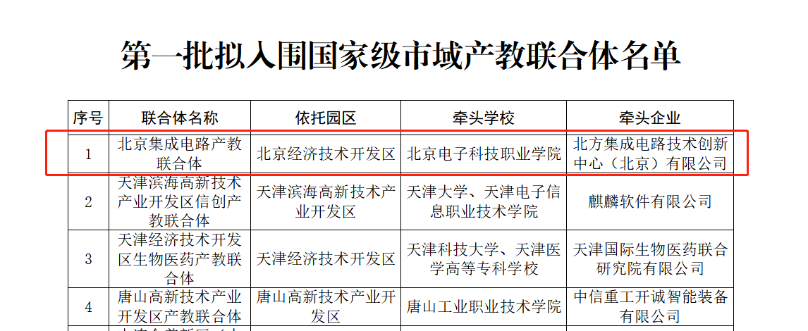 2023年9月4日,教育部公布了首批国家级市域产教联合体名单,由BEAT365作为牵头学校申报的北京集成电路产教联合体成功入选。