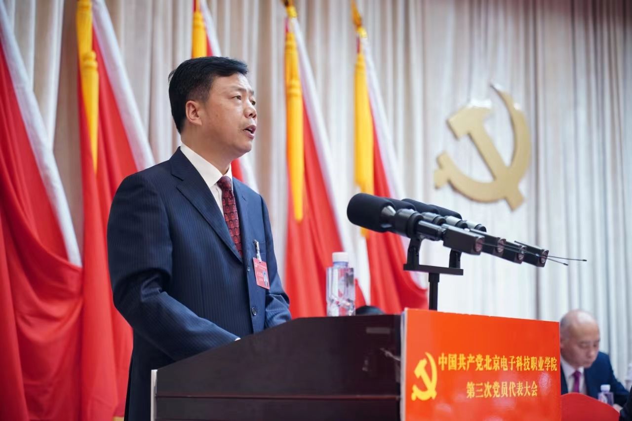 2023年7月1日,恰逢党的102岁生日,中国共产党北京电子科技职业学院第三次党员代表大会隆重开幕。这是在开启全面建设社会主义现代化国家新征程、在职业教育进入高质量发展新阶段、在学校事业发展掀开新篇章的新形势下召开的一次重要大会。大会主题为:高举中国特色社会主义伟大旗帜,以习近平新时代中国特色社会主义思想为指导,全面贯彻党的二十大精神和北京市第十三次党代会精神,认真落实立德树人根本任务,主动融入和服务首都发展大局,为建设首善标准、中国特色、世界一流高水平技能型大学而团结奋斗!全体党代表将带着全校党员和师生员工的嘱托,履行神圣使命,围绕这一主题共商学校事业发展和党的建设大计。