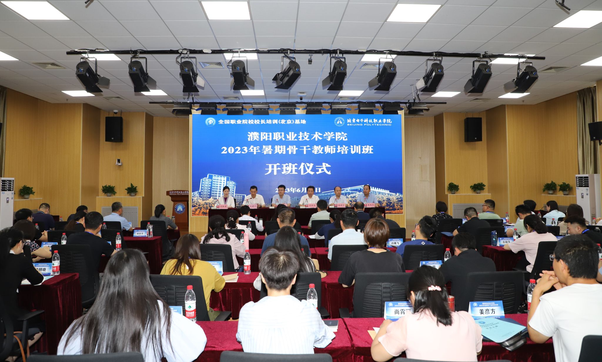 为深入贯彻落实党的二十大精神,加强职业院校教师素质队伍建设,由北京电子科技职业学院全国职业院校校长培训(北京)基地承办的濮阳职业技术学院2023年暑期骨干教师培训班于6月17日正式开班,来自濮阳职业技术学院的65名骨干教师参加培训。北京电子科技职业学院副院长张晓刚、濮阳职业技术学院党委书记刘洪浩等出席开班仪式。开班仪式由继续教育学院副院长刘建平主持。