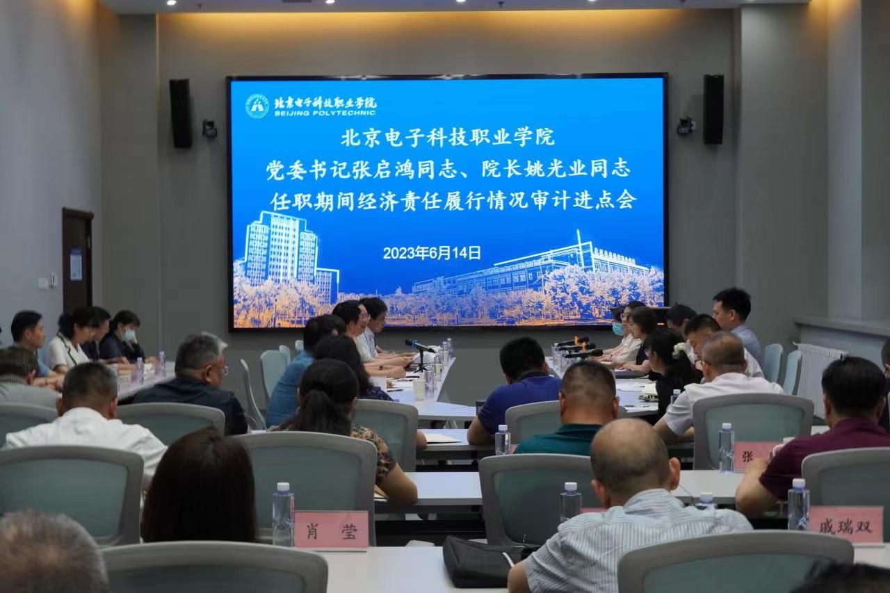 2023年6月14日上午召开了学校党委书记张启鸿同志、院长姚光业同志任职期间经济责任履行情况审计进点会。北京市审计局党组成员、副局长、审计组组长曾晓冬,行政事业处处长李万军同志,第四派出局副局长、审计组副组长蔡雪,三级调研员崔勇以及市审计组相关同志出席会议。学校党委书记张启鸿;党委常委、纪委书记徐江波;党委常委、副院长辛秀兰、朱运利、陈江锋、张晓刚同志出席会议。党委常委、纪委书记徐江波主持会议。