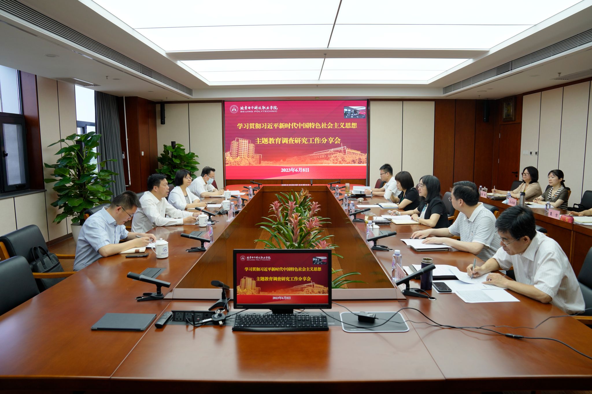 6月8日上午,学校党委通过线上线下相结合的形式,召开领导班子学习贯彻习近平新时代中国特色社会主义思想主题教育调查研究阶段工作分享会。市委第十九巡回指导组副组长雷京、组员崔坤杰同志到会指导。会议由党委书记张启鸿同志主持。