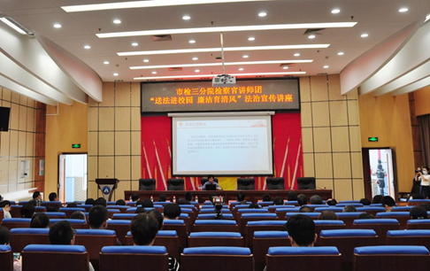 为全面贯彻落实党的二十大精神,深入开展学习贯彻习近平新时代中国特色社会主义思想主题教育,持续开展党风廉政教育和校园安全教育,引导党员干部持续树牢纪律意识、规矩意识,教育广大学生加强法治意识、安全意识,5月17日,学校邀请北京市人民检察院第三分院检察官讲师团来校开展“送法进校园,廉洁育清风”主题法治宣传讲座。讲师团成员宇一星检察官、王星云检察官,北京市人民检察院第三分院干部刘峥、刘志远、刘丹,学校纪委书记徐江波,党委常委、党委宣传部部长张晓刚,纪委委员,重要部门、重点岗位、重大项目负责人,学生代表参加。
