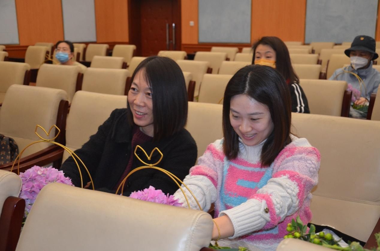 3月17日,“温情三月 与花对话”插花活动在校内举行,校工会特邀艺术设计学院黄笛老师带领大家体验花艺插花,用“心”与花对话,陶冶情操。老师们在愉快的气氛中完成了自己的插花作品,收获满满。