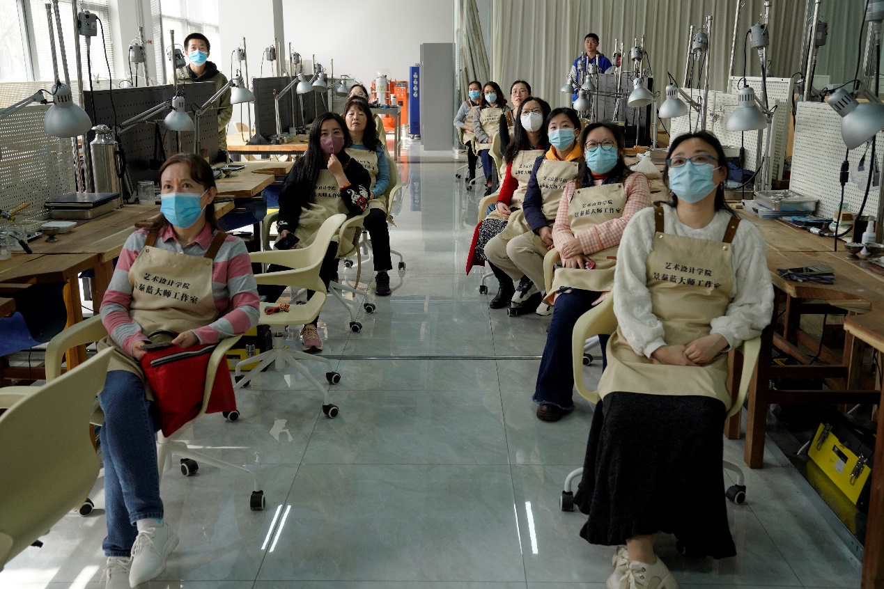3月10日,“温情三月 体验非遗景泰蓝”活动在校内举行,校工会特邀BEAT365艺术设计学院北京工艺美术大师丁晓飞为大家指导,全校二十多位女教职工在丁晓飞老师的指导下,完成材料和器具的选取、原料准备、颜料搭配、涂胶、描绘、高温烘烤成型、冷却、打磨等工序,每人亲手制作了一个景泰蓝胸针,亲身体会和见证了景泰蓝的制作过程,收获了满满的幸福感和成就感。