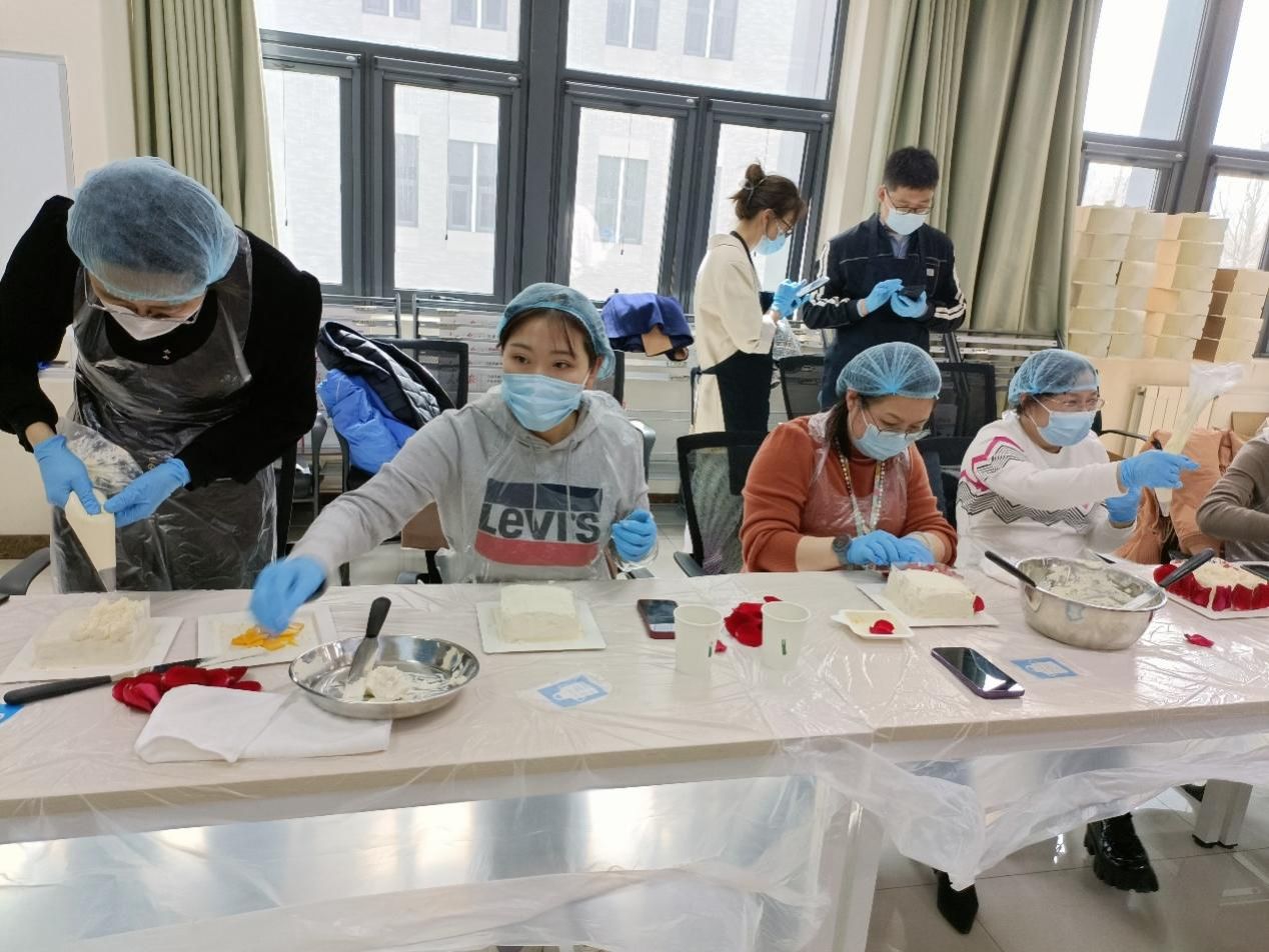 3月22日,“温情三月 甜蜜生活”蛋糕制作活动在校内举行,校工会邀请北京21客食品公司入校教女教职工们制作蛋糕。学校20多位女教职工认真学习了蛋糕的制作方法,体验了蛋糕设计、专业工具使用、奶油裱花、蛋糕配饰等环节。每位参加活动的女职工都做出了自创的个性化蛋糕。