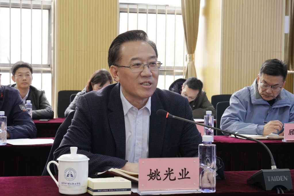 姚光业代表学校对孙其军一行莅校调研表示欢迎,对北京市教委领导长期以来对学校工作的支持表示感谢。他介绍了学校的基本情况和特色优势,并指出今年学校将重点围绕“建高升本”、“升本建高”、转型升级、改革创新等四个方面具体展开工作。他表示,学校将整合资源全力推进升本工作,争取尽早实现升本目标;用好高层次人才政策和绩效改革政策,改善教职工切身利益;提升贯通培养层次,为职业院校学生提供成长成才通道;积极配合职业院校师资培训基地建设工作,有能力和信心承担职业教育师资培训任务;完成各项技能大赛的办赛参赛工作,在比赛成绩上取得更大的突破。