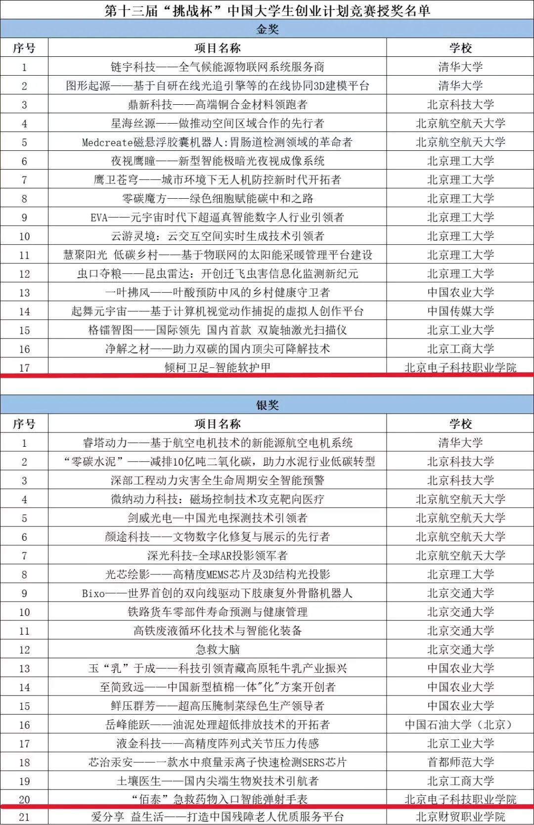 BEAT365“挑战杯”全国总决赛金奖、银奖项目