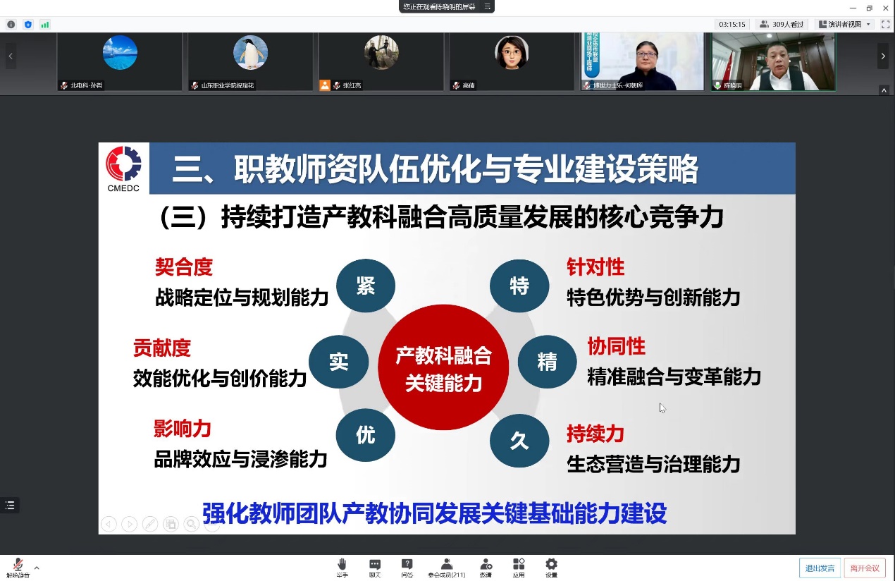 专家报告环节,Festo(中国)有限公司教学培训部教学设计与教学创新咨询专家刘邦祥介绍了德国双元大学教育现场工程师培养机制,解读了德国增强实践能力的高等教育项目DHBW模式和连带职业资格的高等教育项目ULM模式内涵,重点总结了德国双元大学教育模式对我国职业教育与先进制造现场工程师培养的借鉴意义。百度科技有限公司ACG工业解决方案总监闫晓风从数字生产力相关政策、企业的数字化转型和数字时代对人才的新需求三个维度梳理了数字生产力与中国现场工程师培养内在关系与逻辑,强调联盟在结合自身特点和优势,在现代职业教育体系建设改革上先行先试、率先突破、示范引领的重大意义。机械工业教育发展中心主任陈晓明的报告高屋建瓴、醍醐灌顶,从制造业变革驱动与产教科融合发展、职业教育高质量发展及其工程要素、职教师资队伍优化与专业建设策略、共铸产教融合创造力的行业特色行动四个方面系统地解读了职业教育高质量发展的战略,透析了产教融合与校企合作的作用机理,为联盟加快形成以教促产、以产助教、产教融合、产学合作模式指明了路径,提供了方法。
