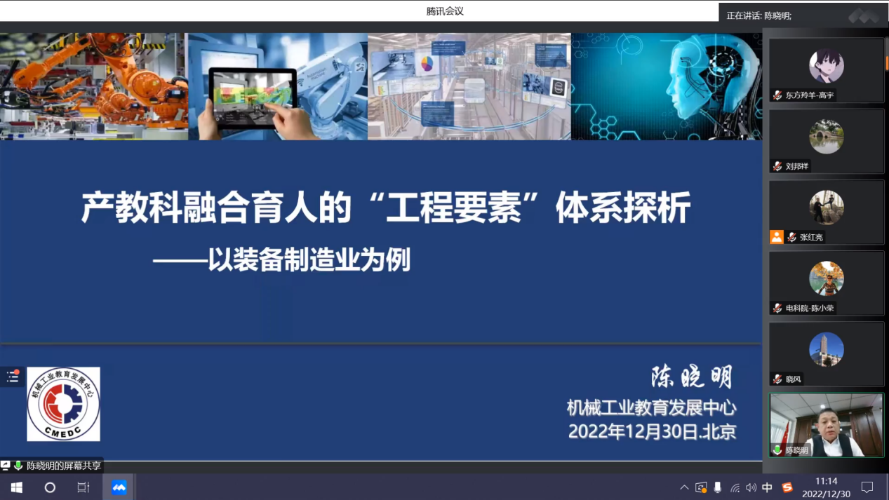 12月30日上午,先进制造业现场工程师校企协作联盟(简称“联盟”)成立大会以线上形式隆重召开,副院长辛秀兰、朱运利,机械工业教育发展中心主任陈晓明、产教合作处兼发展研究处处长黄小东等特邀嘉宾出席会议。会议由机电工程学院院长陈小荣主持。