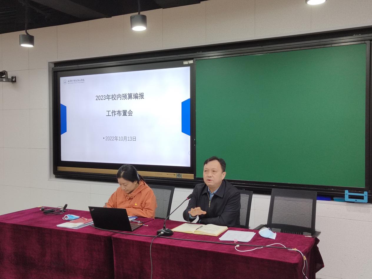 2022年10月13日,为做好学校2023年总体经费预算的编制工作,提高预算的科学性、合理性、完整性、准确性,学校组织开展了2023年校内预算编报工作布置会。副院长陈江锋出席会议并主持,各部门负责人、预算管理员、项目负责人、财务处、资产处等相关人员参加会议。
