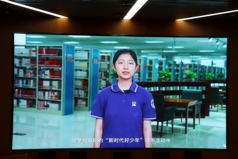 4名参加主题教育读书活动的贯通学生代表分别通过线下线上方式围绕主题“我为祖国点赞”、“美好生活、劳动创造”、“红心向党”、“强国有我”等“新时代好少年”主题教育读书活动进行了精彩的读书心得分享和视频演讲展示。