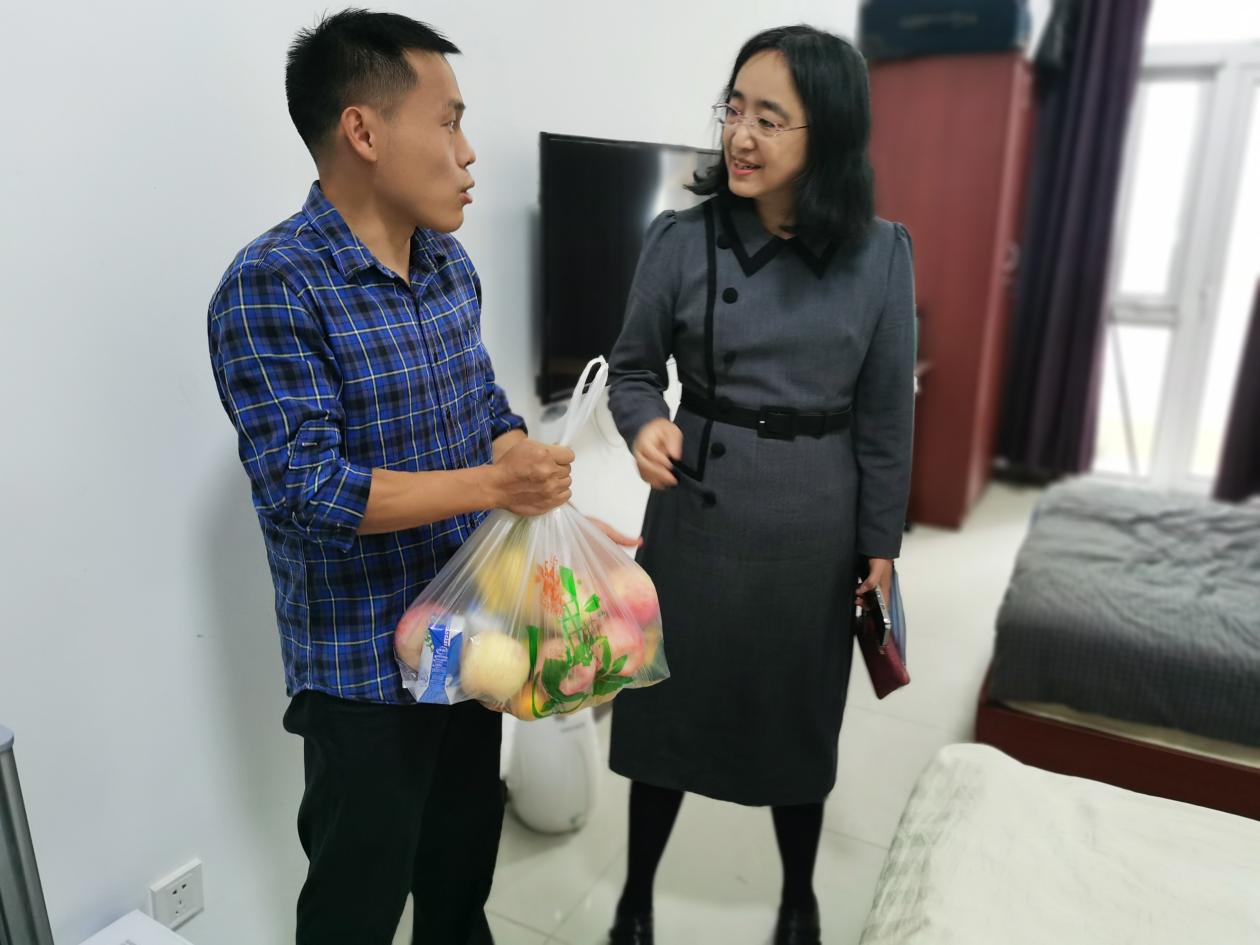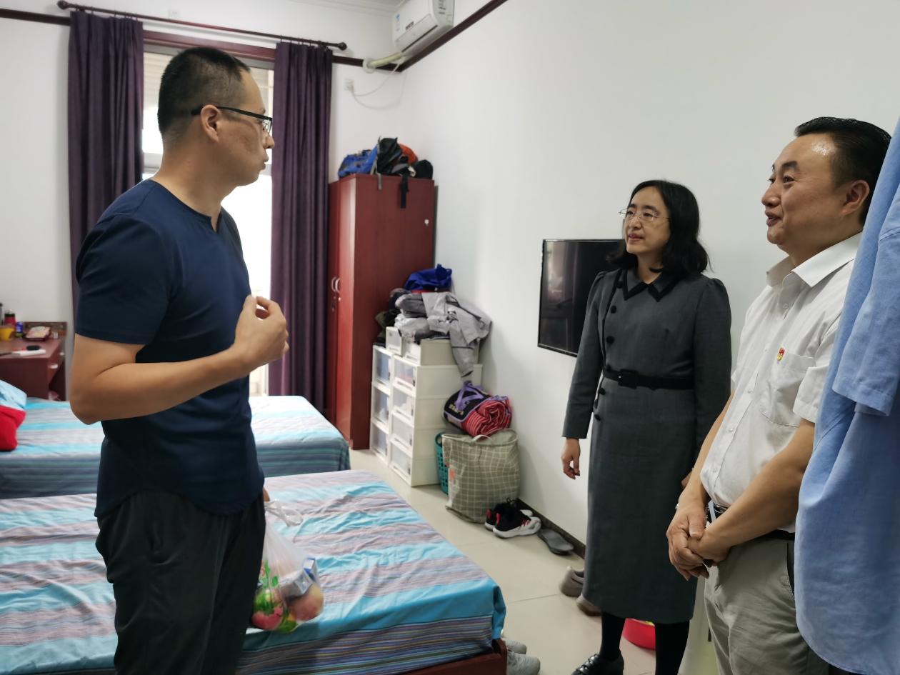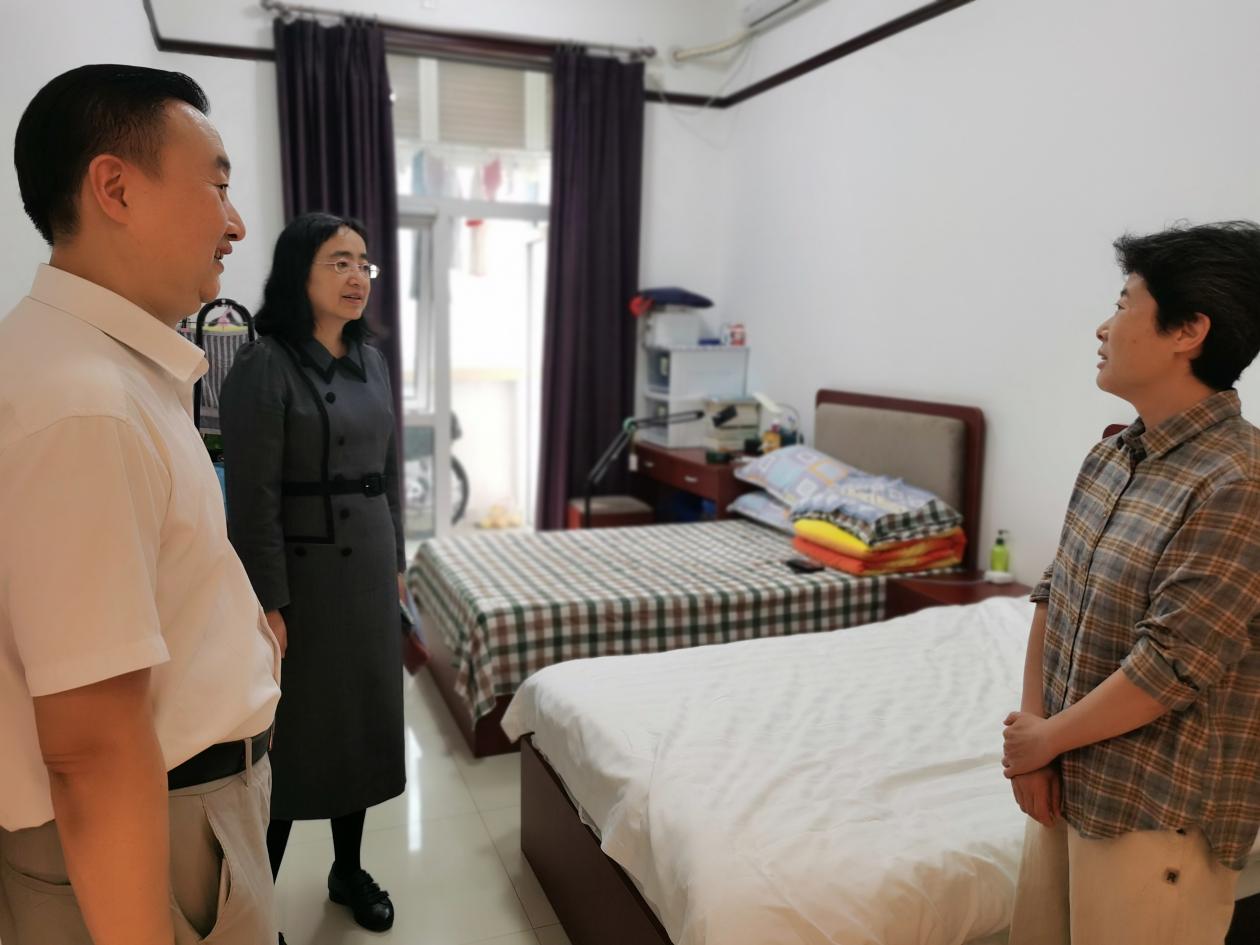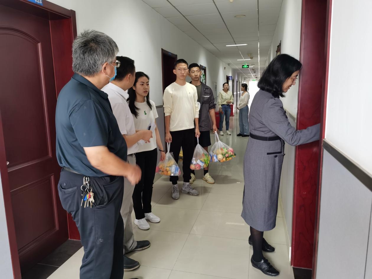 2022年10月1日上午,党委副书记王玮一行来到校内职工集体宿舍,看望、慰问国庆假期住校教职工。