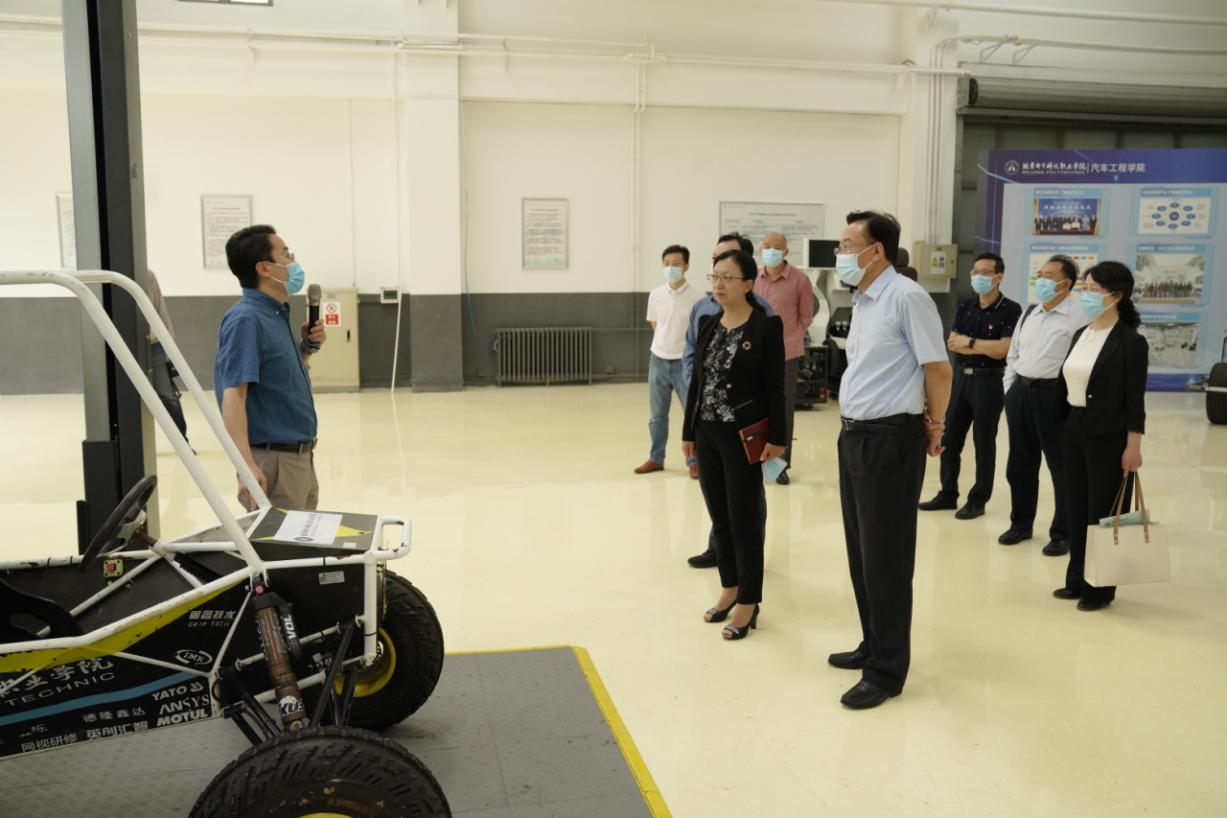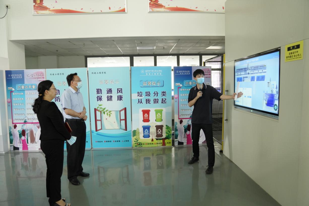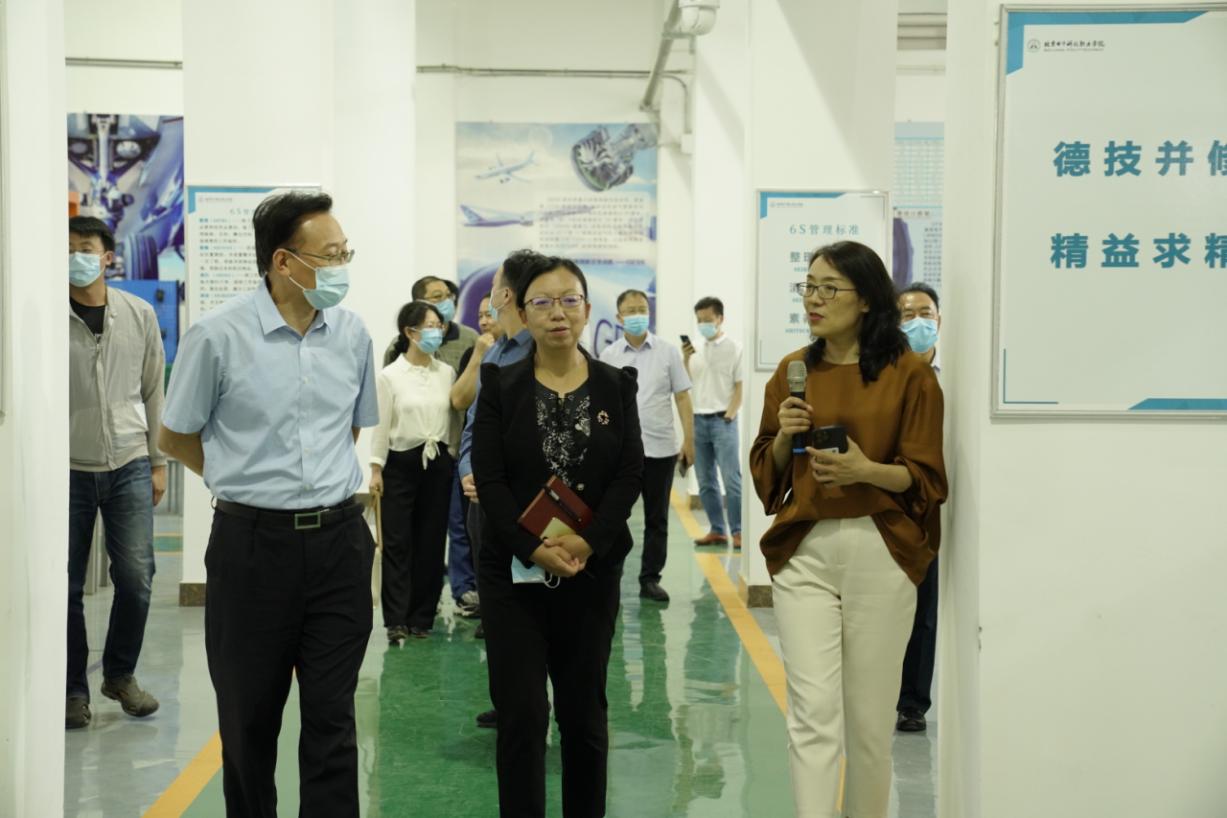 姚光业陪同王粤一行参观了航空工程学院、艺术设计学院、机电工程学院、汽车工程学院、电信工程学院,了解了学院概况、产教融合、师资队伍建设、专业群建设等相关情况,并重点围绕办学经验、人事管理、学徒制建设实施、服务属地等方面的经验和做法进行了交流研讨。