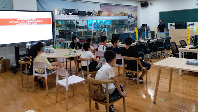 体验汽车文化。汽车工程学院副院长吕江毅带领学生们参观了学院实训基地和红色教育基地,为学生们介绍了学院发展历程,展示了汽车建设成就,对学生进行了红色基因传承教育。王楠老师为学生们演示了3D制作车模的全过程。学生们在老师们的讲解中充分感受到汽车制造专业的魅力。