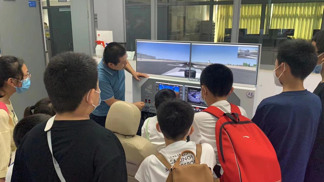 体验航空文化。7月20日下午,航空工程学院实训中心主任孙浩热情接待了学生们,他向学生们展示了学院建设成就,指导学生们体验模拟飞行,组织参观飞机实训基地,带领学生走进难得一见的飞机驾驶舱,面对眼花缭乱的各种仪器仪表,学生们的好奇心和求知欲被进一步激发,更加愿意深入了解、掌握航空知识,同时对国家民航事业的发展充满期待,自豪感尤然而生。