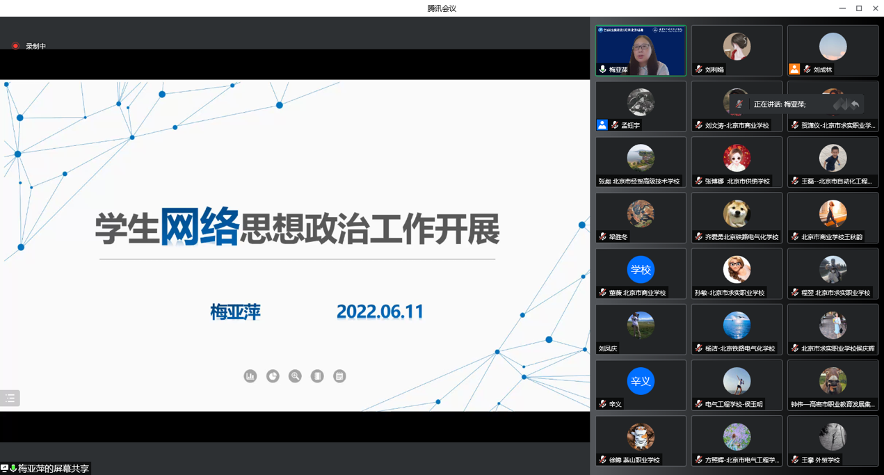 2022年6月10至12日,由北京电子科技职业学院举办的全国职业院校校长培训(北京)基地(以下简称“基地”)第二期中职学生管理培训班顺利完成线上培训任务。来自全国职业院校的中职主管学生工作副校长、德育教育负责人、团委书记、系部负责人和专任教师等135人参加了线上培训。