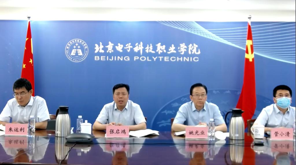 姚光业讲话指出,面对北京疫情防控严峻复杂的形势,全校教职员工克服疫情,全力保障学校在线教学工作顺利开展,确保学校各项工作平稳有序开展。他对学校下一步在线教学工作提出四点希望:一是知难而进,做在线教学的积极探索者。对在线教学中出现的问题,要积极应对,努力适应新的教学情境,积极吸收在线教学的新理念和新技术,推动信息技术与教育教学深度融合的教学模式创新。二是坚守初心,做课程思政的模范践行者。教师要充分发挥在线课堂主阵地作用,深入挖掘课程思政元素,加强思想政治教育,积极宣传学习防疫阻击战中涌现的先进事迹,弘扬社会美德。三是精准施策,做教学改革的示范引领者。教师要认真研究和改进教学方法,以学生的“学”为中心,认真准备每一堂课,同时要充分挖掘网络优质资源,确保线上线下教学质量同质同效。四是严格标准,做教学质量的坚定守护者。做到疫情期间开展线上教学与线下教学同样严肃,同样重要,做到教学标准不降,教学质量不降。