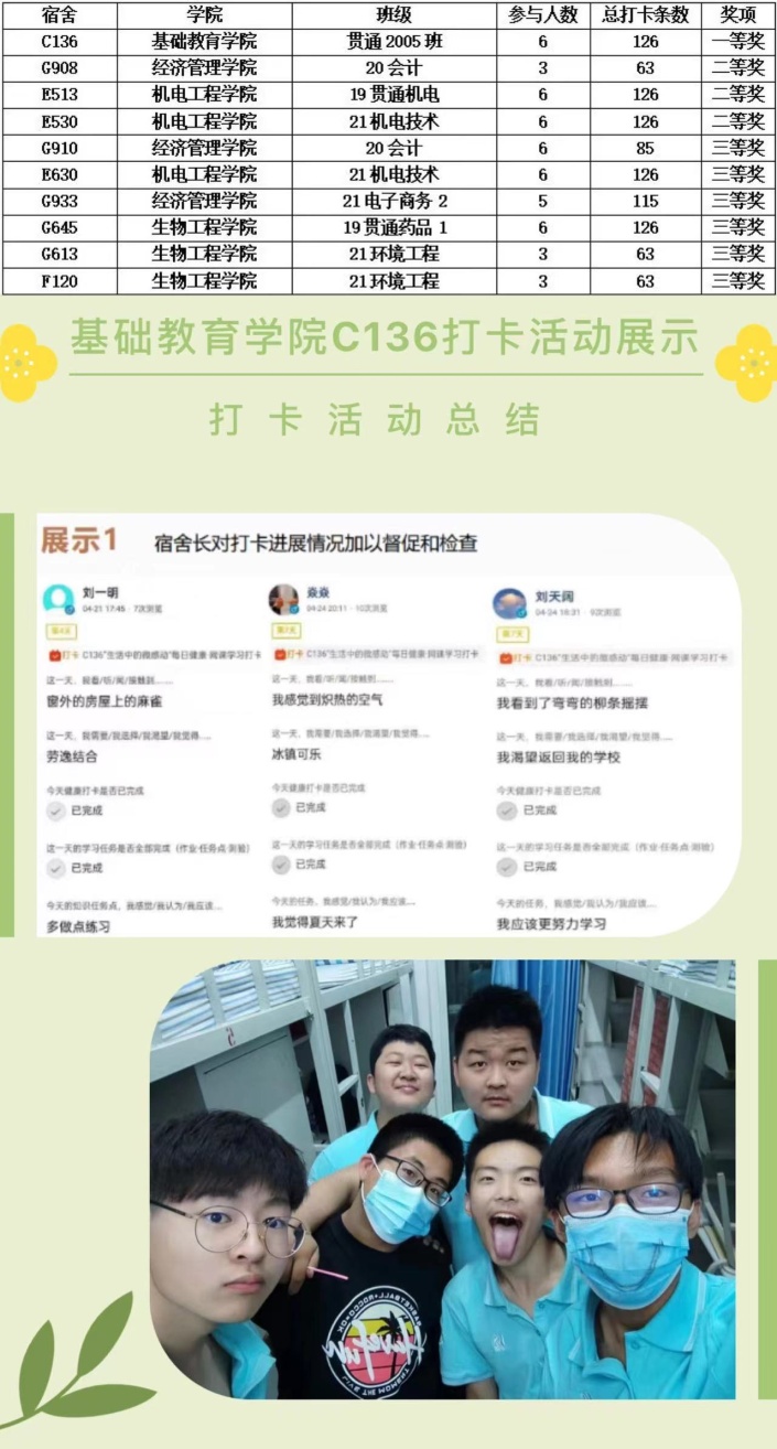 5月13日,“生活中的微感动”活动落下帷幕,同学们以宿舍为单位进行了多种形式的21天线上打卡,大家共同交流居家学习生活,勇于尝试,培养日常“微习惯”,活动增强了宿舍同学间的情感联结,提升了学生自我觉察及感知社会支持的能力,传播了乐观自信的青春正能量。