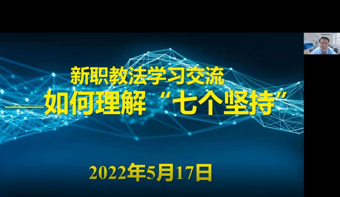 新修订的《中华人民共和国职业教育法》自今年5月1日起施行。为引导青年人才深入学习贯彻新职业教育法精神,推动职教法在学校落地落实,助力学校“提质培优、增值赋能、建高升本”重点任务,5月17日晚,“匠心”青年人才领航工作站(青年人才党支部)邀请“匠心”青年人才领航工作站导师、机电工程学院副院长黄敦华教授通过线上直播的方式为在站青年教师解读了新职业教育法。在站的18名青年人才参加了研讨交流,党委副书记王玮、党委组织部、党委教师工作部、人事处(教师发展中心)相关处级干部出席了活动。