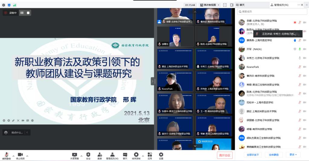 国家教育行政学院职教研究中心主任邢晖和天津轻工职业技术学院副院长李云梅分别作《教师团队建设与课题研究》《国家级团队共同体及经验建设分享》报告。两位专家的报告高屋建瓴,内涵丰富、思想深刻,为协作共同体的建设指明了方向。