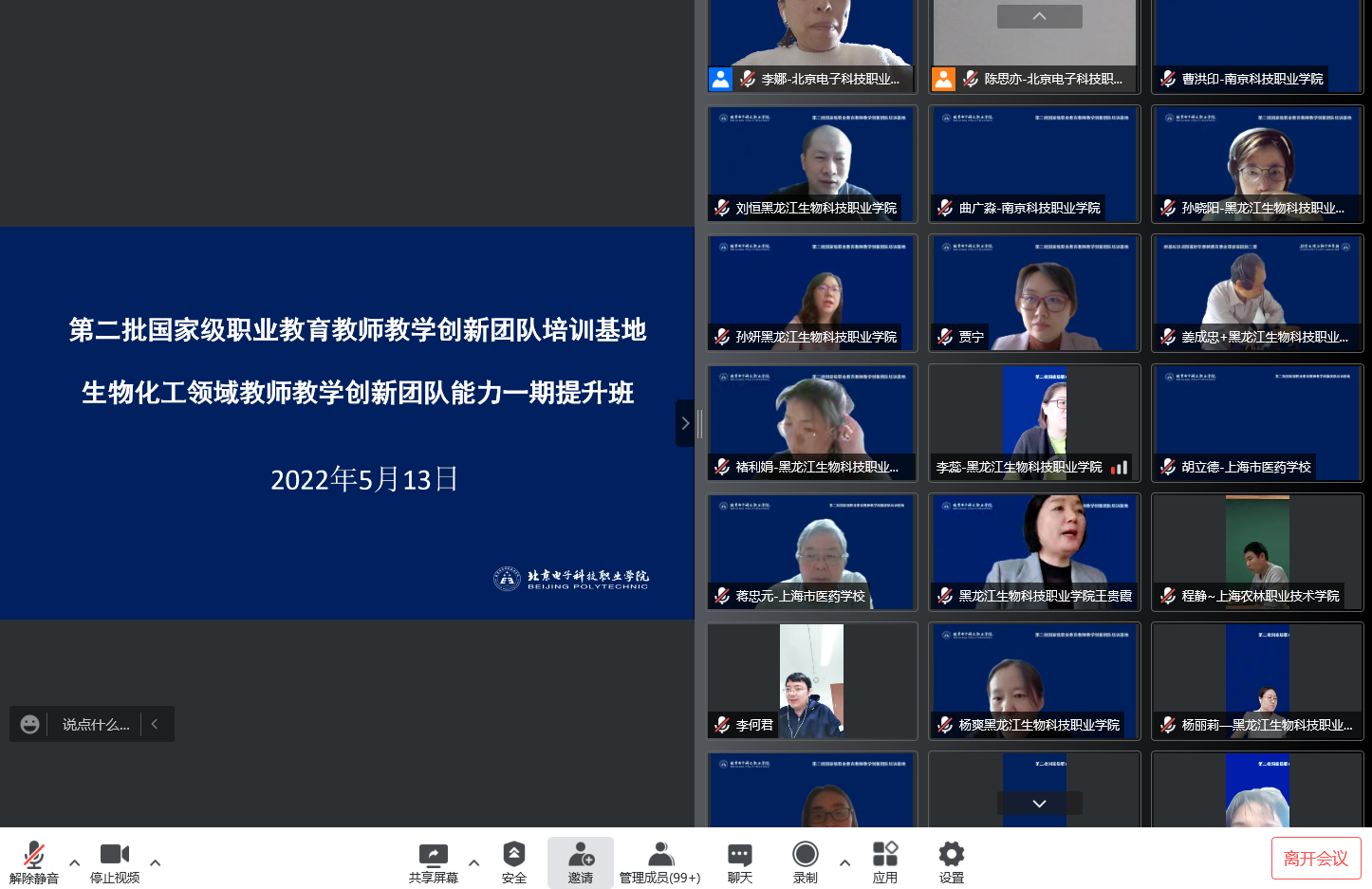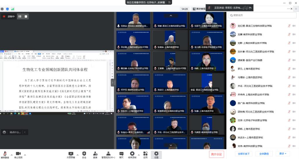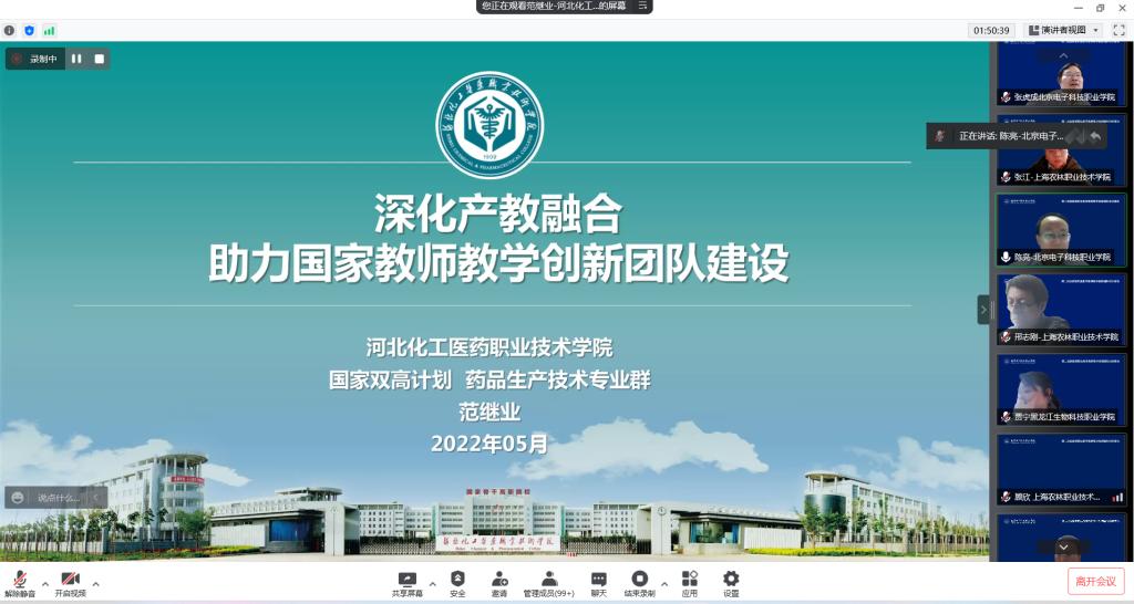 5月13至14日,由北京电子科技职业学院牵头的第二批国家级职业教育教师教学创新团队生物化工共同体成立大会暨生物化工领域教师教学创新团队能力一期提升班顺利召开。来自北京电子科技职业学院、上海市医药学校、上海农林职业技术学院、河北化工医药职业技术学院、黑龙江生物科技职业学院、南京科技职业学院等6所院校,华北制药金坦公司等19家企业近150人参加线上会议。