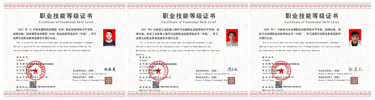 推进1+X证书制度试点改革。作为首批“1+X”证书制度试点院校,学校先后获批35项改革试点,获批X证书考核站15个(详见下表),X证书专业覆盖率达到90%。学生通过参加X证书培训与考证,技术技能水平和岗位适应能力有了明显提升,目前已有1070名学生完成取证。其中,计算机网络技术专业获取Web前端开发职业技能等级证书的毕业生全部入职IT类技术岗位,专业对口率达100%,从事Web前端开发岗位工作的同学薪资达到每月12000元;国际商务17级毕业生共72人考取“物流管理1+X”中级证书,其中有63人升入北京工商大学攻读物流管理专业学士学位,1人出国继续攻读物流管理专业本科文凭,其余8人全部就业于证书相关岗位。