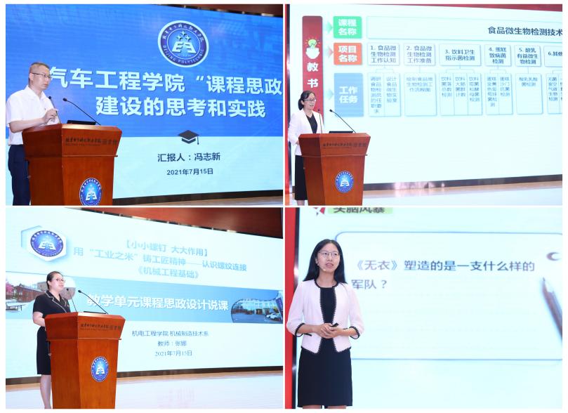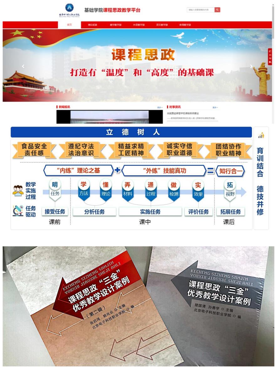 推进课程思政建设,打造“三金”教育教学品牌。推进思政课与学生专业、信息技术、学生需求相融合,率先使用智慧课堂教学互动系统,思政课程教学实效性得到增强,《光明日报》《中国教育报》、中国教育电视台等多家媒体对此进行了广泛报道。开展课程思政“三金”(金扣子、金种子、金点子)教学案例设计活动,引导各专业教师充分挖掘各类课程承载的思想政治教育资源,遴选三批优秀教学设计案例150项,其中100项已公开出版。在“三金”案例基础上,评选“最美课堂”,引导教师展示专业知识与育人元素的融合方法,累计评选30个“最美课堂”并在全校推广示范。建立三级课程思政示范课程培育机制,《食品微生物检测技术》和《动力电池及其管理系统》获批教育部课程思政示范项目。