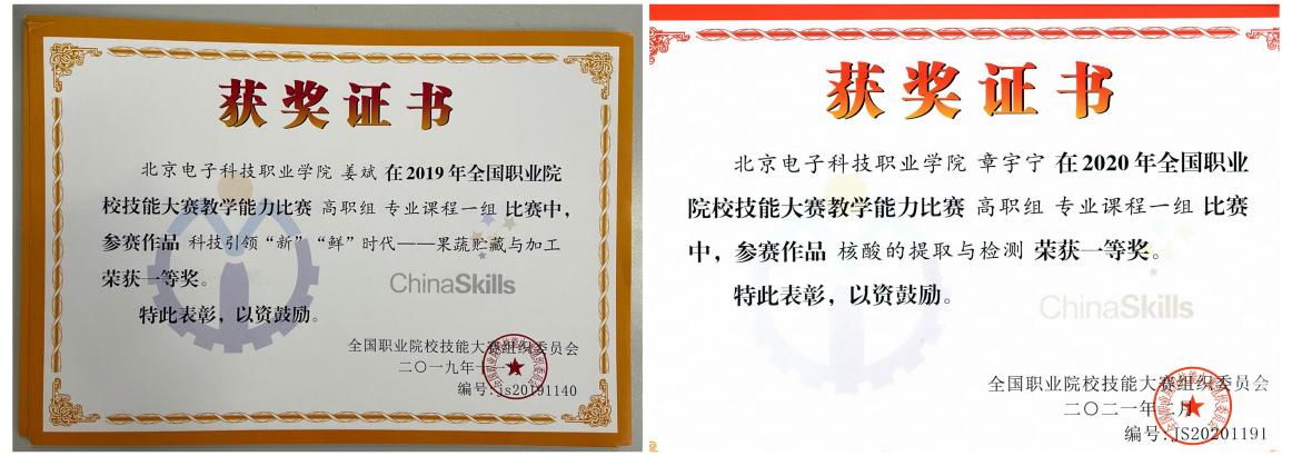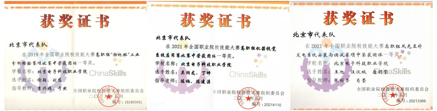 以赛促学以赛促教,不断提高人才培养质量。学校通过实施“校级、市级、国家级”三级技能竞赛体系,鼓励教师把技能竞赛项目转化成开放性的实践教学项目,作为常态教学开展,落实以赛促学以赛促教,进一步通过层层选拔磨练师生的技能及品格,有效提高了教育教学质量,培养了一大批高质量的技术技能人才。学生参加技能大赛成绩斐然,2019年以来学生参加各类比赛累计获奖397项,其中国家水平技能大赛获奖30项,北京市水平技能大赛获奖159项,北京市水平及以上创新创业类大赛获奖127项,均已提前超额完成“双高”建设指标。