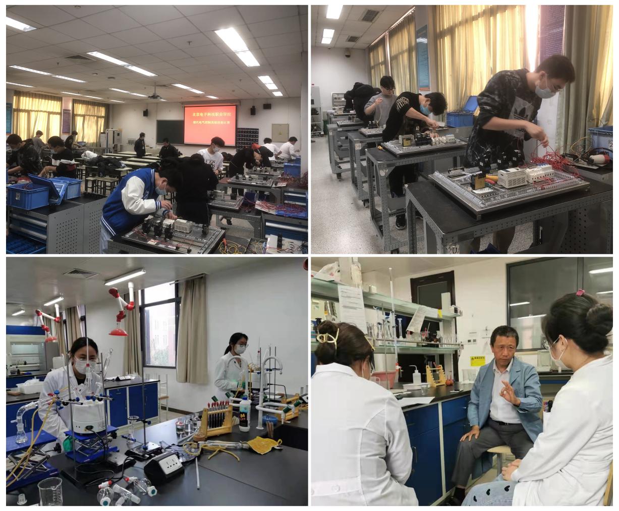 构建“四级能力递进”实践教学体系。依据职业技能形成规律,构建了基本技能、综合技能、生产技能和创新实践能力“四级能力递进”实践教学体系,把职业道德、工程意识和精湛技能的养成贯穿全程,系统培养学生综合运用知识、理论和技术去分析和解决生产实际问题的生产性技能、工程实践能力、应用创新能力。根据四级能力递进的体系要求,按照基础技能实验实训室、综合技能实训室、生产性实训基地和创新实践教学基地四类优化整合实训实习基地。其中校内生产性实训基地38个,含国家级实训基地7个,北京市级实训基地1个,北京经济技术开发区生产性中试基地3个;校内实验实训室371个;校外实习基地210多个。健全实践教学管理体系,规范实习实践教学管理,出台了一系列教学管理制度,包括《顶岗实习管理办法(试行) 》《实验实训基地建设与管理办法》《校企合作管理办法》《实验实训室安全管理办法》《危险化学品管理办法》等,统筹协调实习实训管理工作。