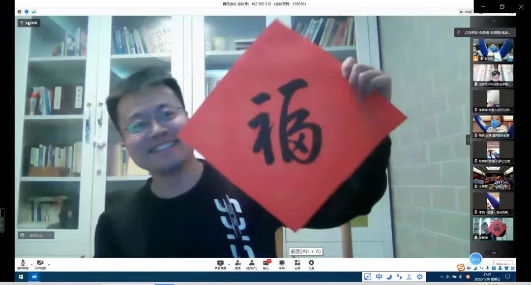 佳节逢盛会,青力冬奥年。在辞旧迎新的日子里,1月30日学校举办“建功冬奥、喜迎新春——冬奥‘电科蓝’新春云相会”活动。学校党委书记张启鸿,党委常委、党政办公室主任张晓刚,党委学工部副部长、团委书记陈红兵线上慰问坚守在志愿服务冬奥会岗位的志愿者们。