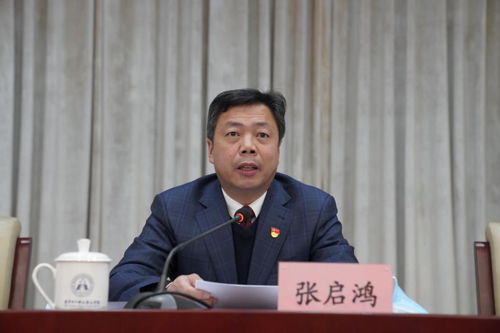 张启鸿代表学校领导班子分别作了2021年学校领导班子述职报告、基层党建工作报告和干部选拔任用工作报告,从政治思想建设、年度重点目标任务完成情况、党风廉政建设、作风建设等方面对学校2021年的工作进行了总结。