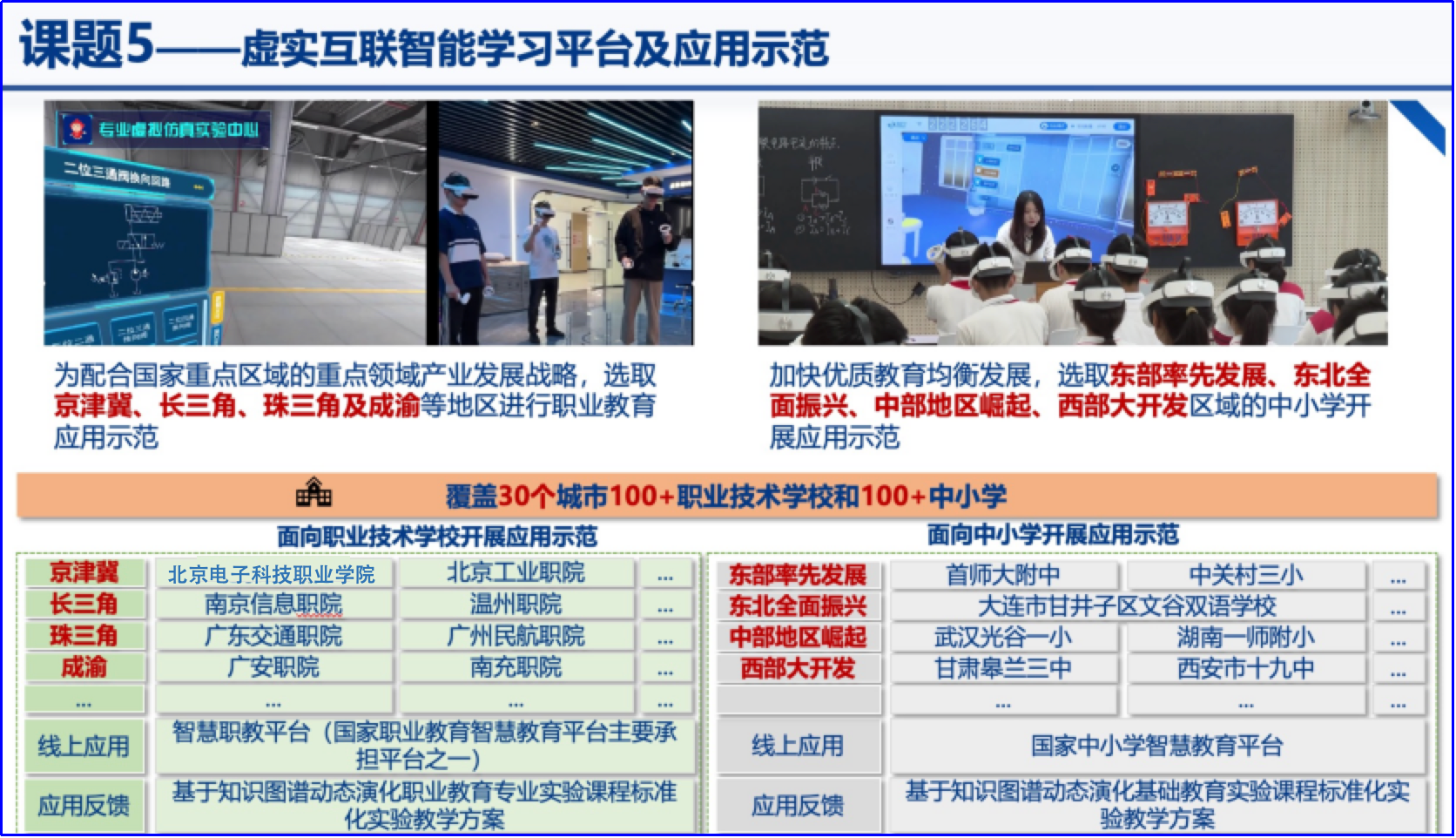 该课题针对异构实验课程资源中理论知识与开放式实验场景不匹配的问题,提出多源实验课程资源的高质量聚合与知识图谱构建方法,研究跨类型、跨学段实验过程与知识的深度融合技术,重点构建理论知识与实验过程的超关系知识图谱融合方法。同时,探索基于隐性知识与显性知识协同演化的图谱更新方法,通过场景化的隐性知识提取与显性化表达,实现虚拟实验过程知识图谱的动态更新,构建科学与工程实验知识库。最终,将上述成果与设备操作系统结合,形成基础设施、集成智能指导与智能交互评测模型、方法与系统;研制面向典型工程领域职业教育和基础教育的虚实互联智能学习平台;构建虚实互联实验课程标准化开发框架及实验智能管控系统;形成职业教育专业和基础教育课程的标准化实验教学方案。课题成果将面向职业教育新一代信息技术、高档数控机床及机器人等五大专业领域,同时惠及基础教育的小学科普、中学理化生等学科课程开展应用示范。