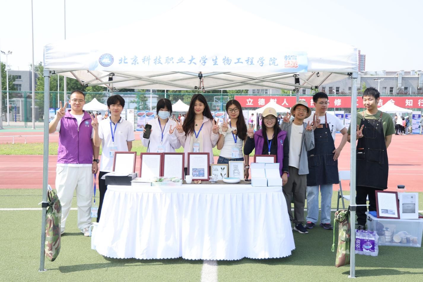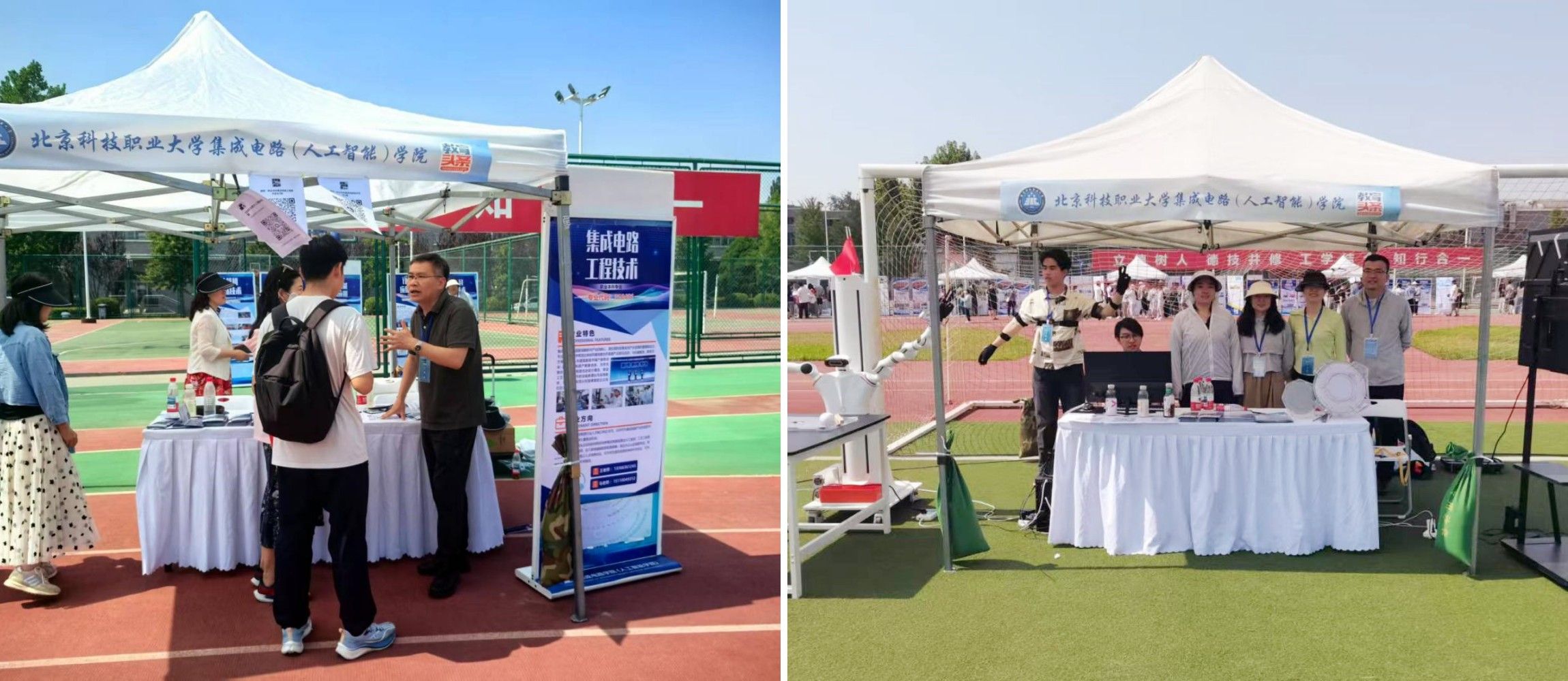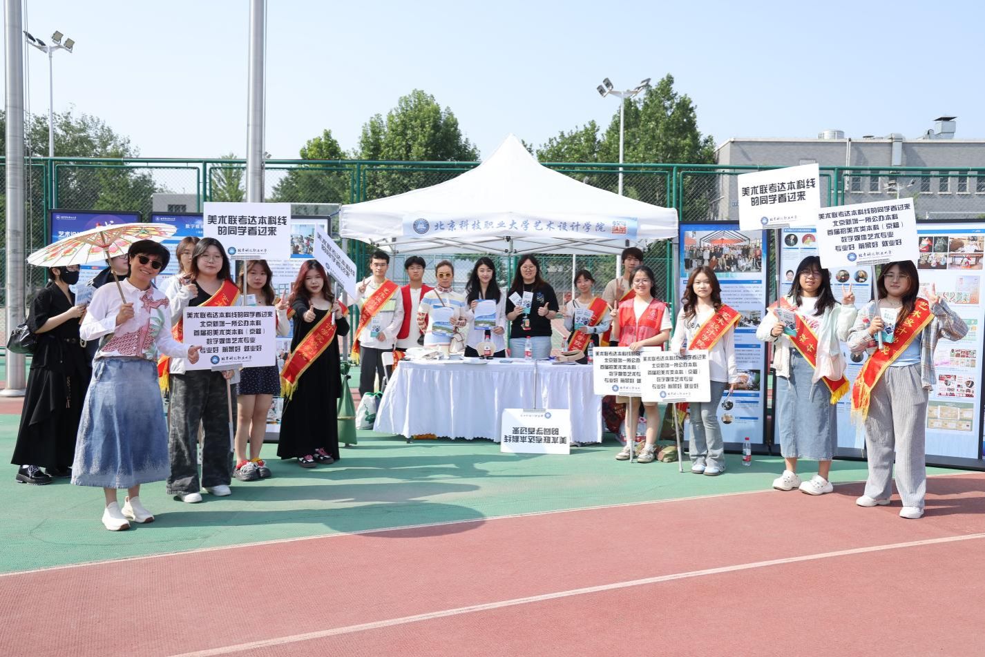 学校在体育场中央设置了BEAT365英国官网教育成果展和学生手工制作互动区,以实物展示和互动参与两种方式,分别从人才培养、产教融合、职业发展等不同角度,全方位展示学校整体教育教学成果,使考生和家长多方位了解职业教育和学校办学特色。