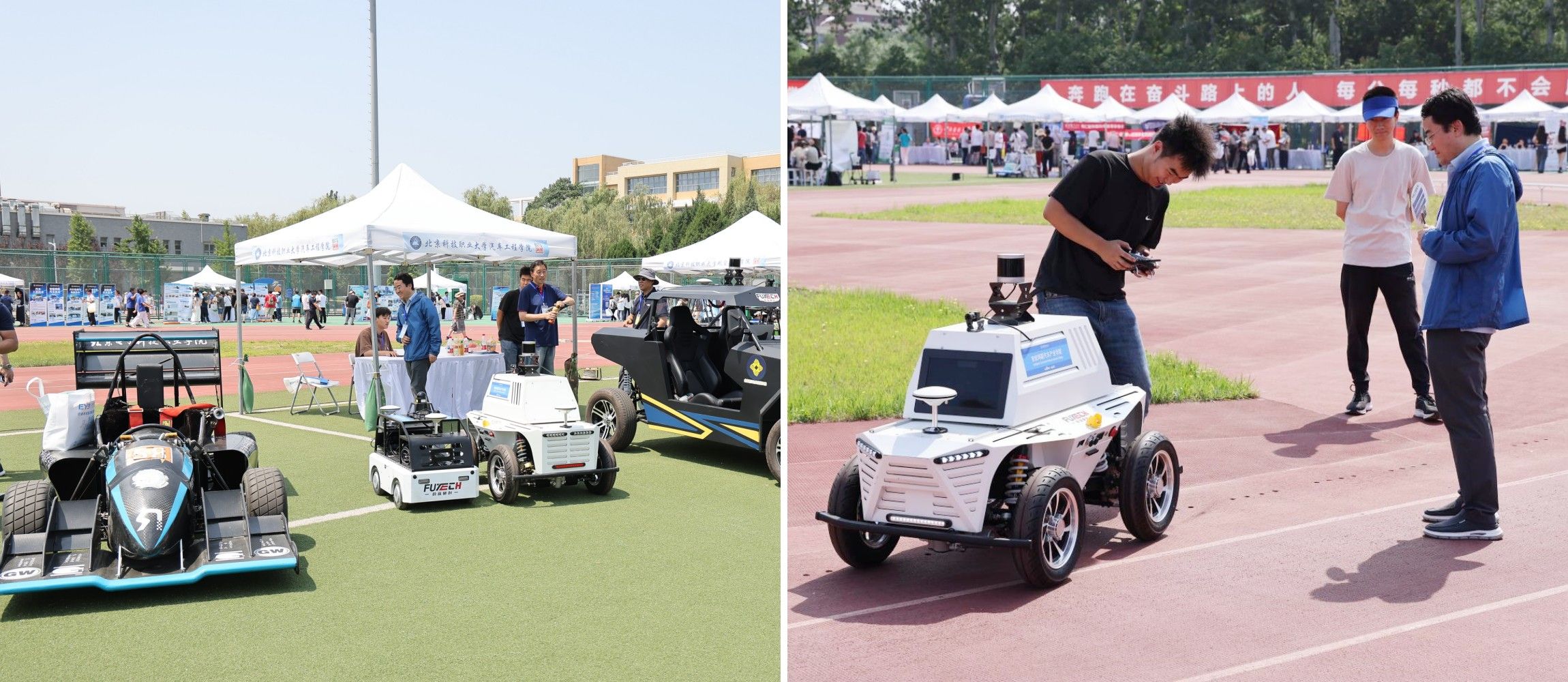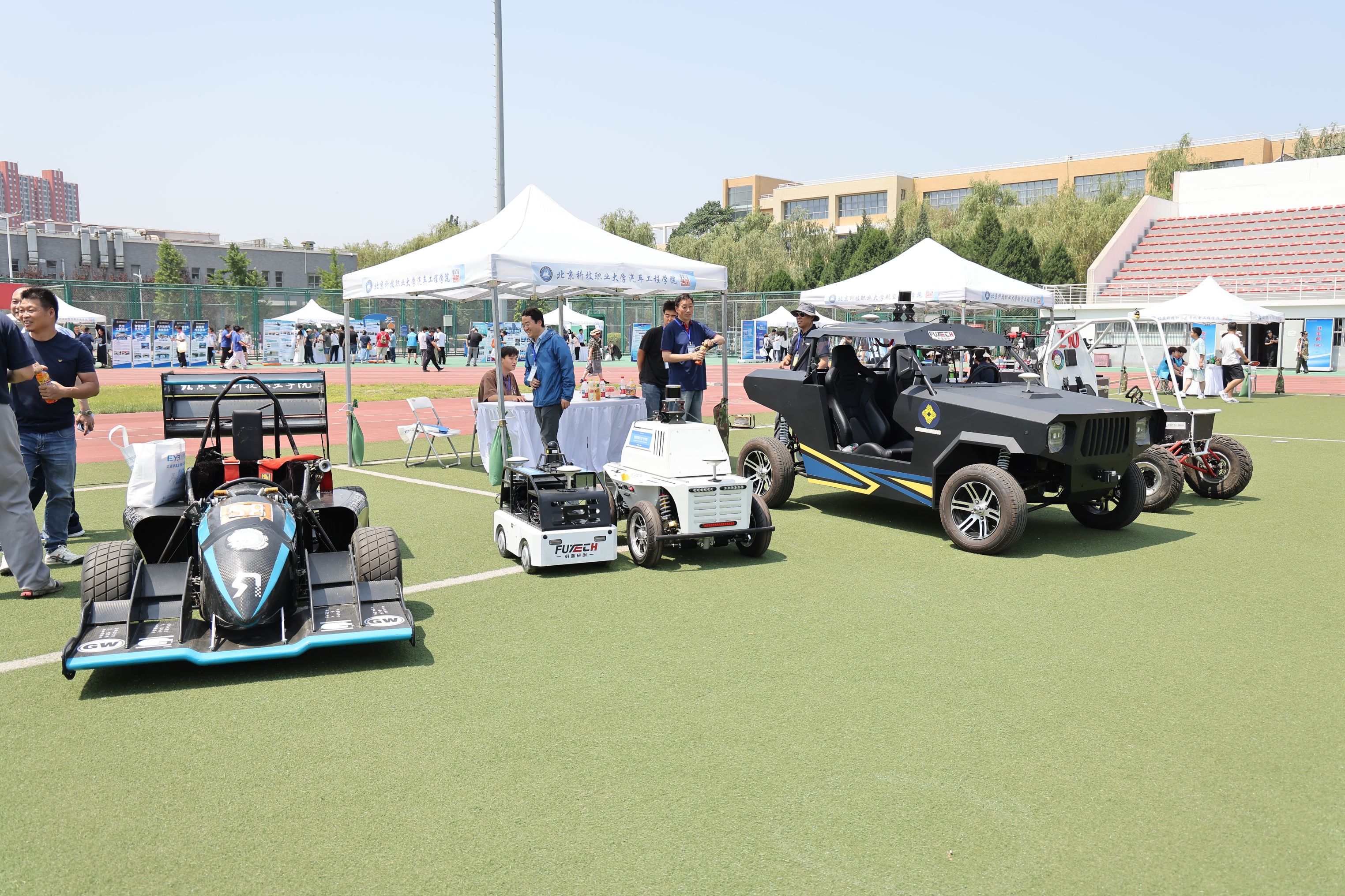 汽车工程学院围绕汽车工程技术职本专业展出的5 辆学生自主设计制造的赛车与全地形智能网联汽车成为现场焦点,车辆从空气动力学车身到智能控制系统均由学生团队主导完成,展现了扎实的工程实践能力。学院特别开放环境智能感知、整车动态测试等 11 间专业实训室,参观者可体验 5G 远程驾驶、自动驾驶仿真等前沿设备操作,沉浸式感受 “教学做一体化” 培养模式。