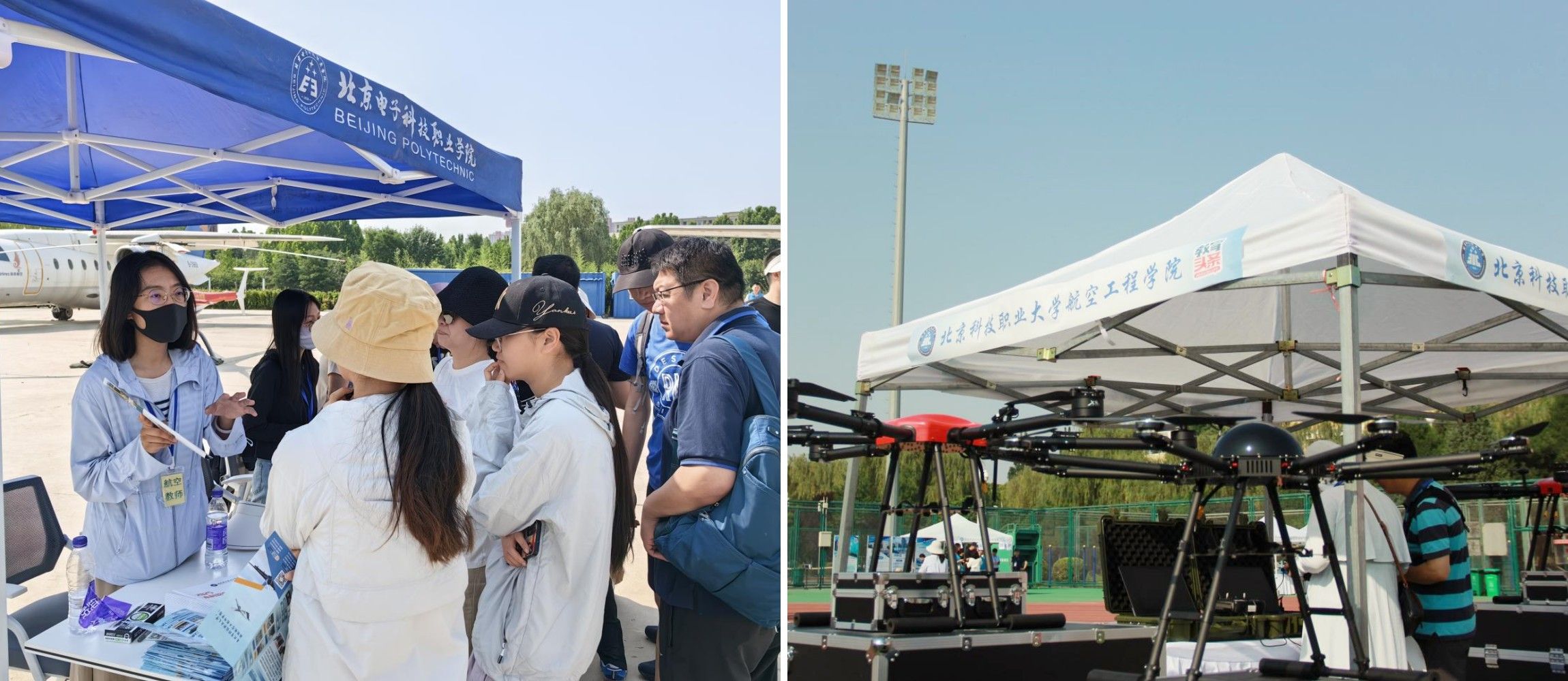 航空工程学院精心打造的特色展区备受瞩目,围绕自动化技术与应用本科专业及三大特色专科专业,通过校企合作案例、行业前景分析等方式,系统解答了考生家长关注的课程体系、职业资格认证、就业渠道等核心问题。航空工程学院在体育场实物展区设置了无人机模拟操控区,提供沉浸式操作体验;在大飞机停机坪设置了“飞机体验”环节,学生及家长们可近距离观摩波音教学用机,在校同学们还以亲身经历分享校园成长故事。