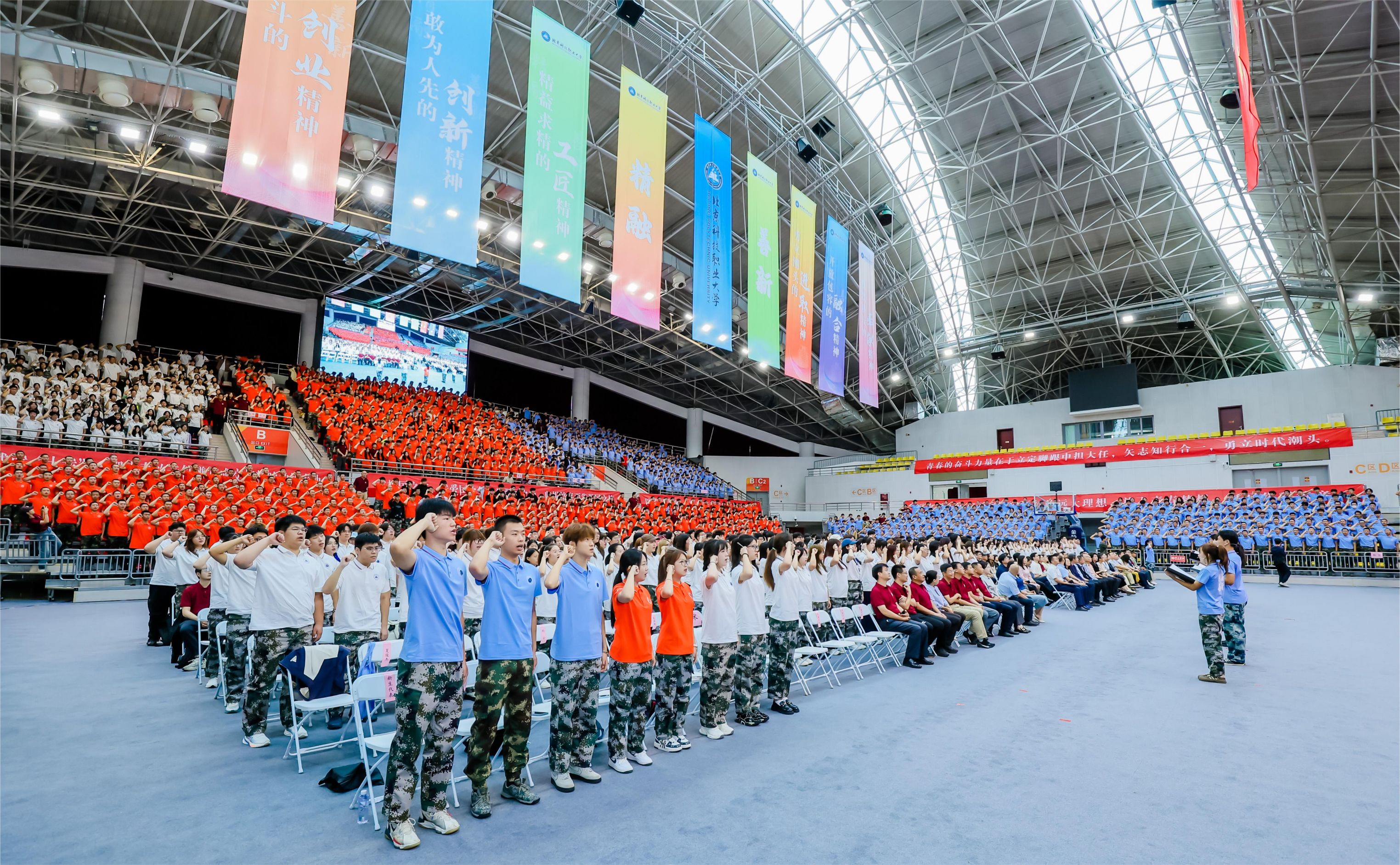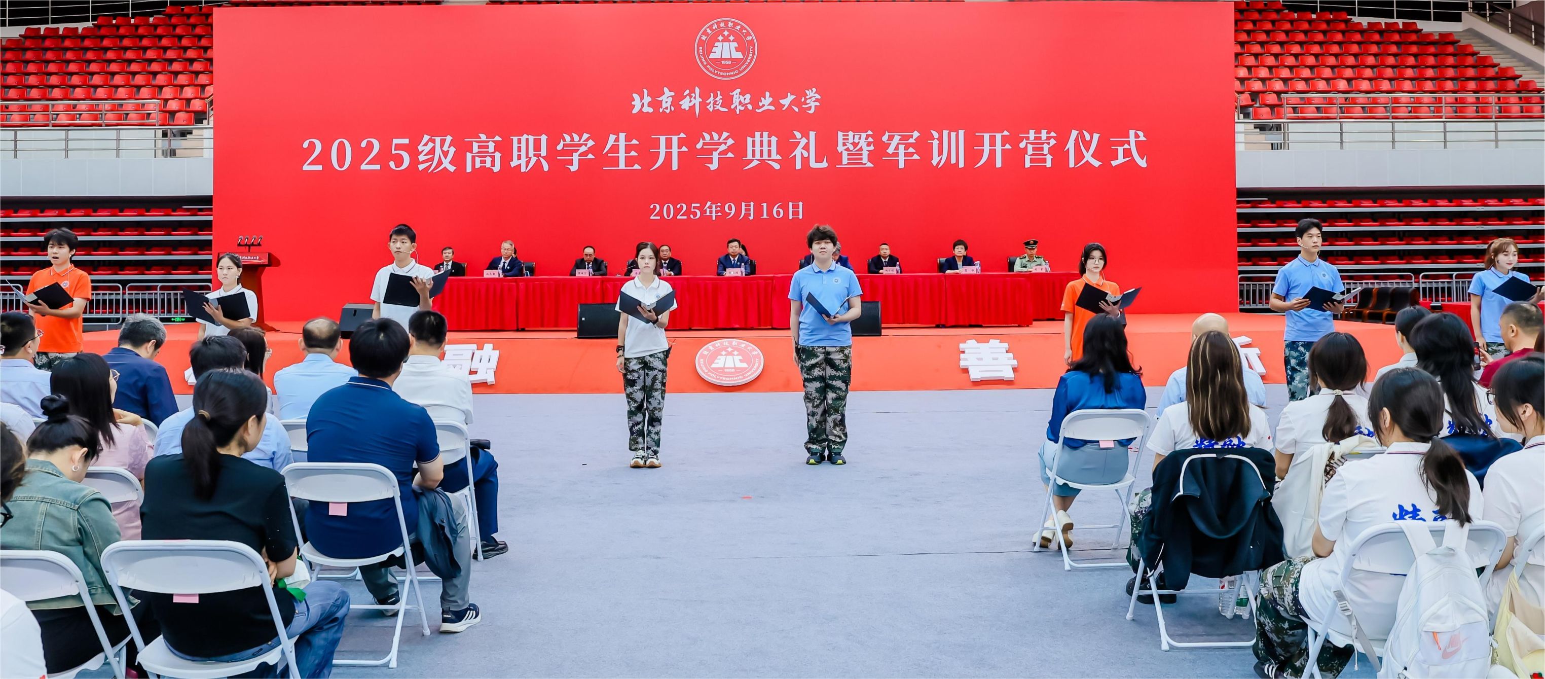 青春集结,逐梦启航。9月16日,BEAT365英国官网2025级高职学生开学典礼暨军训开营仪式在学校体育馆隆重举行。学校党委书记张启鸿,党委副书记、校长王伟,副校长辛秀兰,纪委书记贺静,校长助理冯志新出席典礼,全体高职新生怀揣梦想与期待,以昂扬之姿开启技能成才、匠心筑梦的崭新征程。
