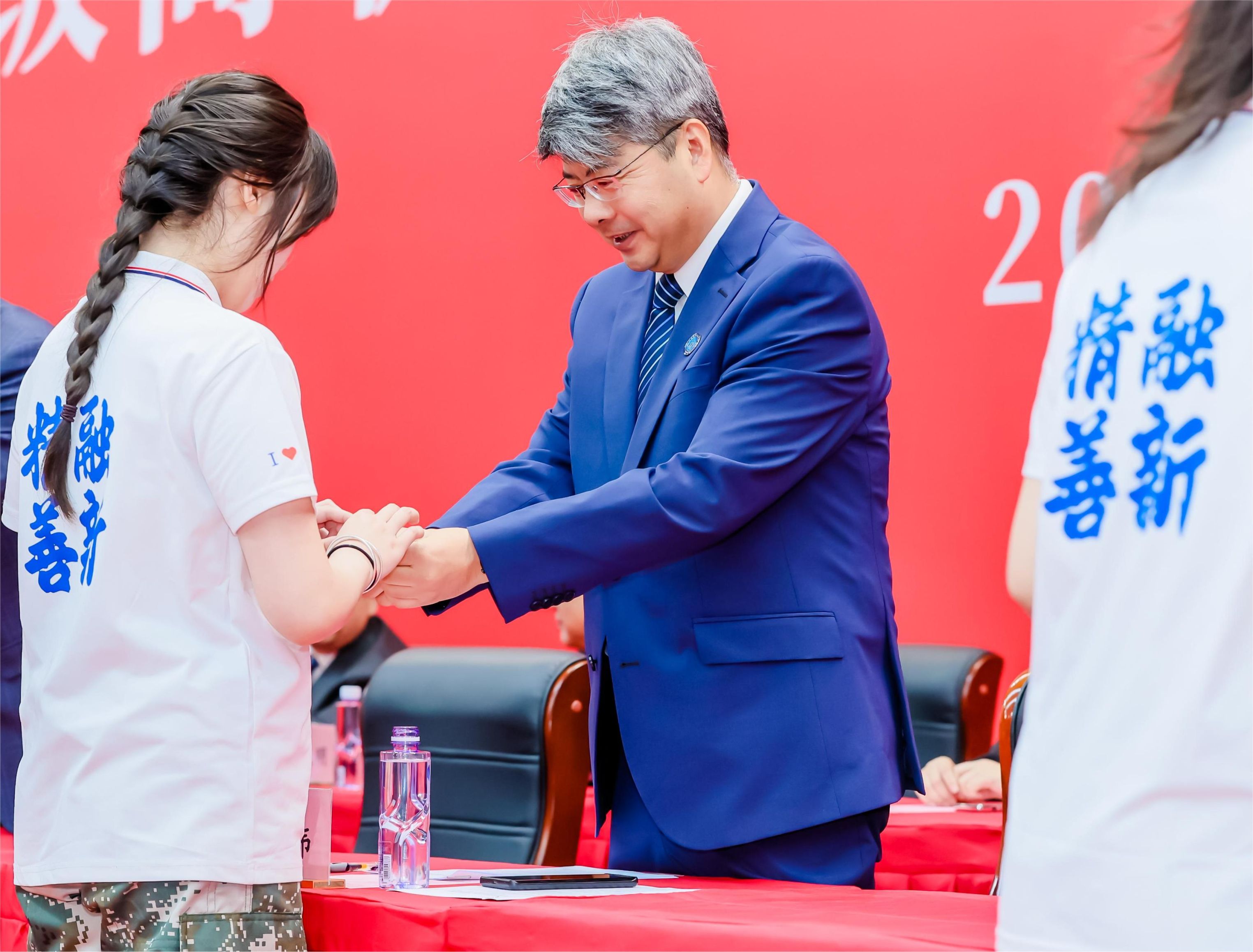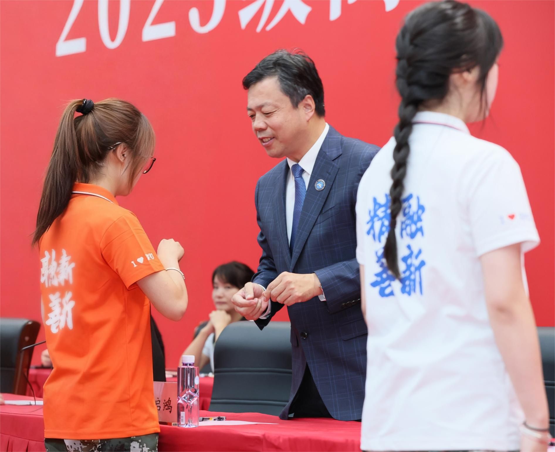 “从佩戴校徽的这一刻起,你们就是真正的‘北职大人’!”在全场目光注视下,学校领导为新生代表佩戴校徽,全体新生起立,为自己佩戴校徽,胸前闪耀的徽章,成为他们开启大学旅程的“成长印记”。
