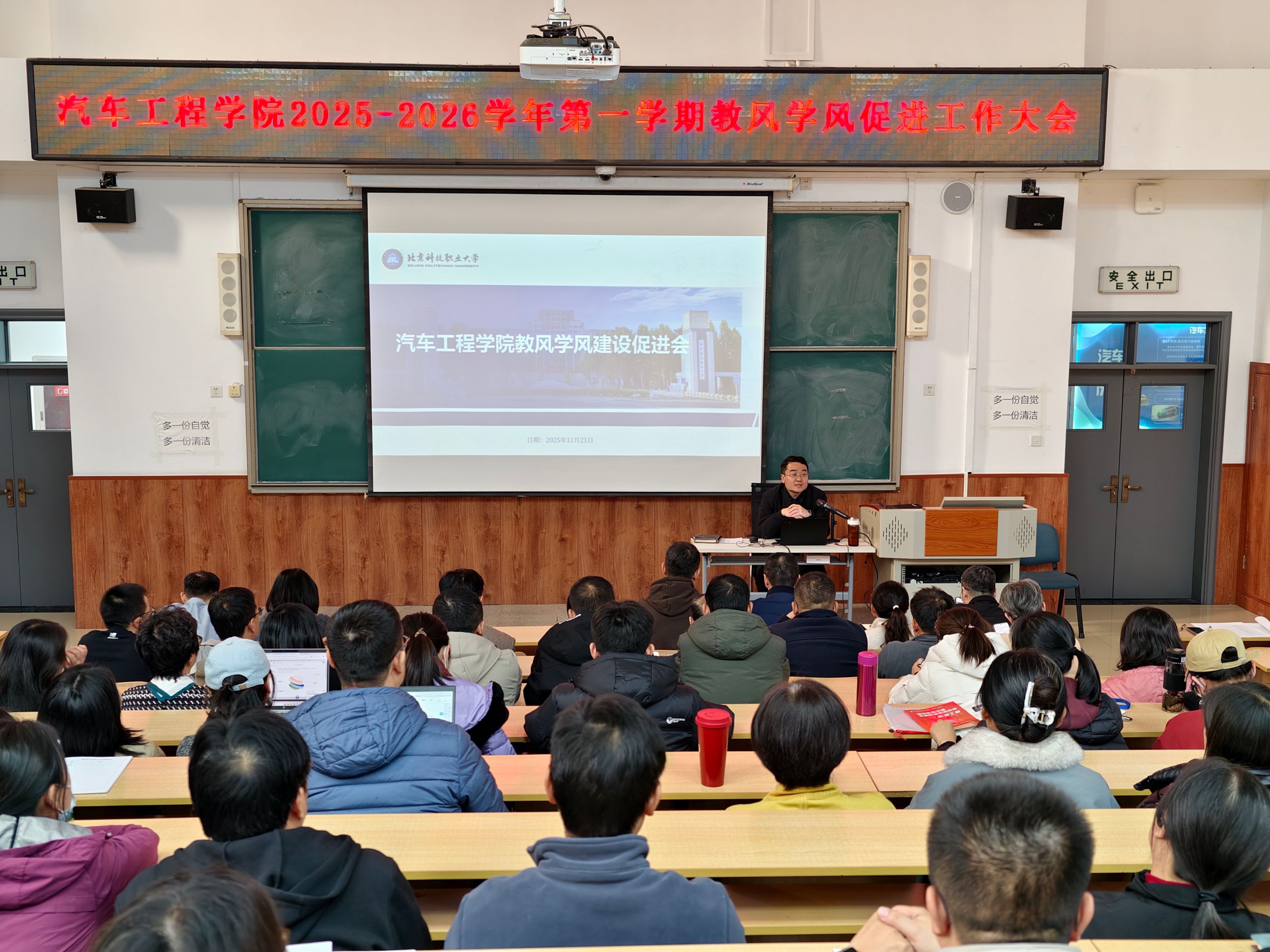 为全面落实立德树人根本任务,响应学校教风学风大检查要求,11月21日下午,汽车工程学院召开教风学风促进工作大会。会议由学院党委书记高强主持。