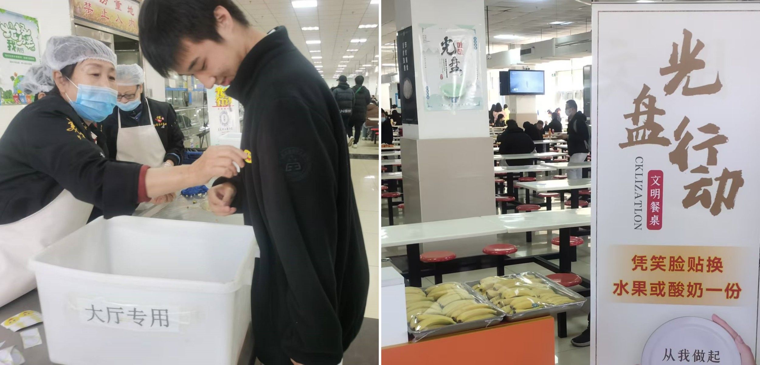 活动通过海报、宣传标语以及管理人员引导,为参与光盘行动的师生们张贴笑脸,并准备了小奖品,以资鼓励。同时推行了小份菜、小碗菜、米饭免费添加等,进一步减少剩菜剩饭。食堂也根据师生用餐反馈以及厨余垃圾产生量,分析食物浪费的原因和规律,进一步调整管理措施和优化菜品供应。