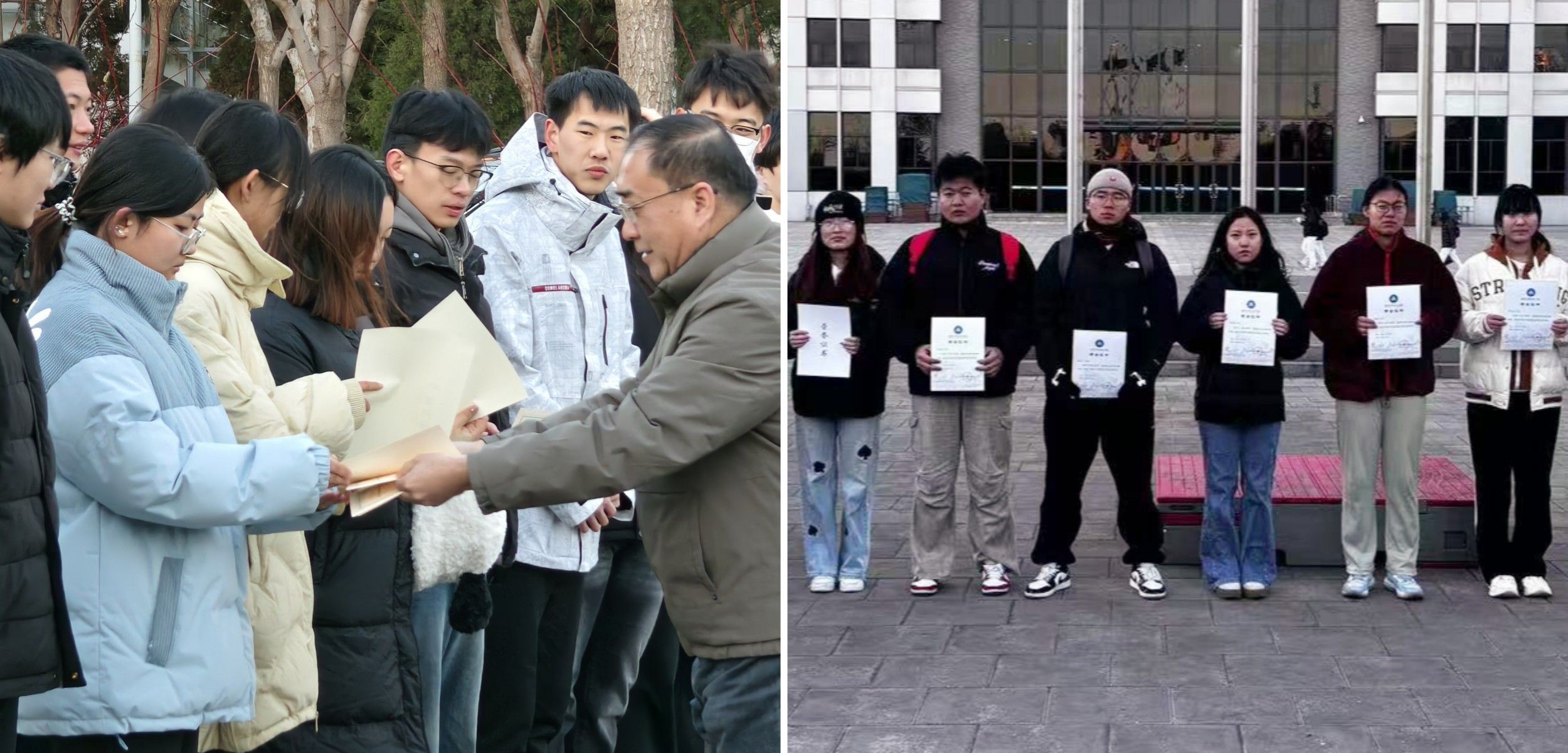 生物工程学院党总支书记齐友明、院长陈亮、分团委书记胡浩为获得2024年生物工程学院优秀基层组织、2023-2024学年校级三好学生及优秀学生干部的班级及个人颁发了证书。