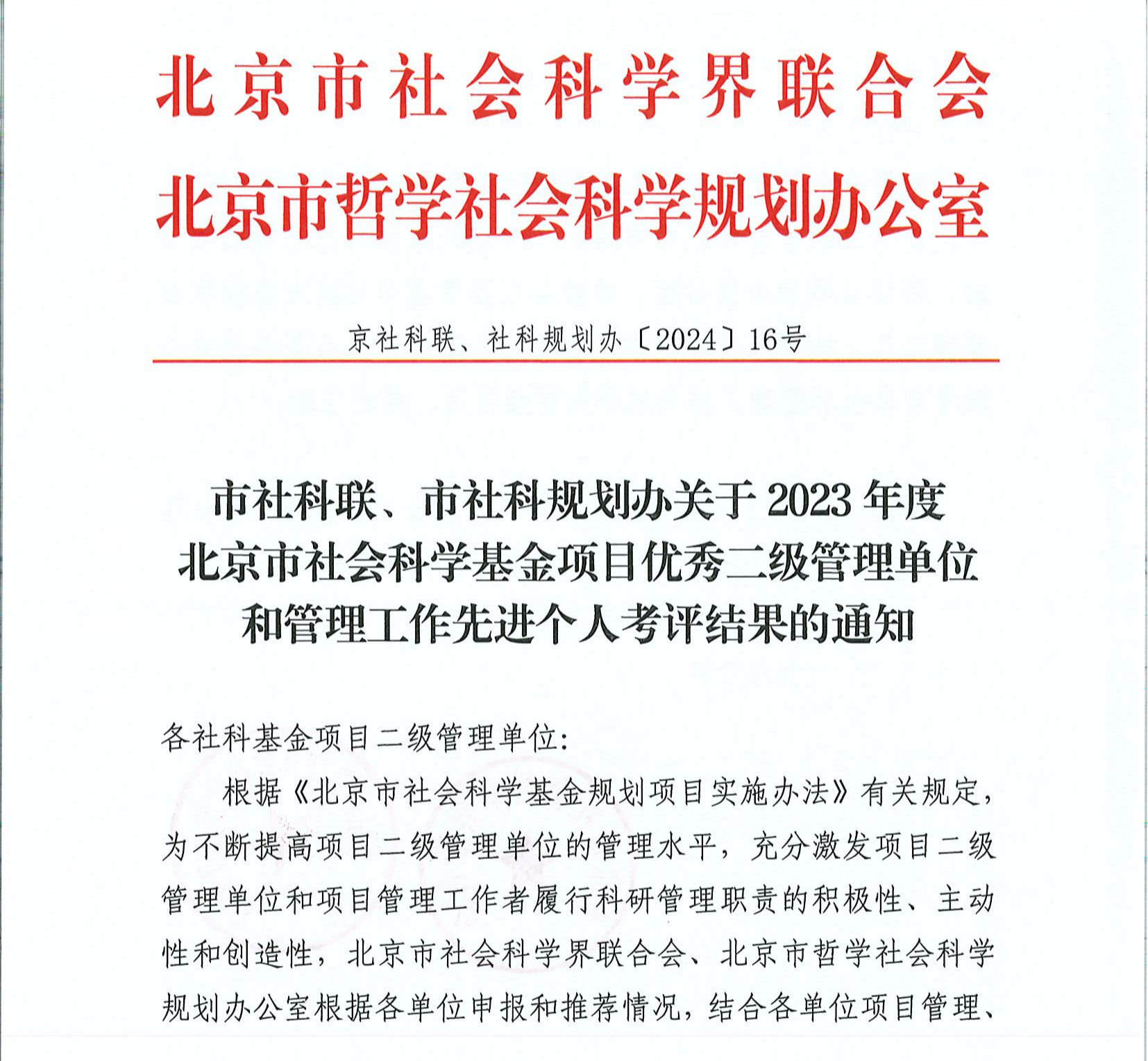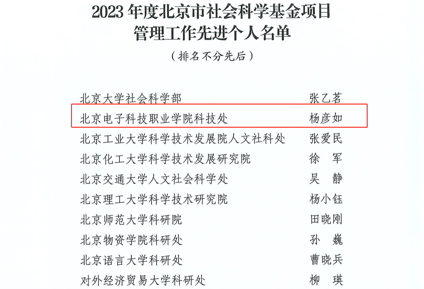 近日,北京市社科联、北京是哲学社会科学规划办公室联合发文,表彰在北京市社科基金项目管理中的先进集体和个人。BEAT365科技处杨彦如获“北京市社会科学基金项目管理工作先进个人”荣誉称号。