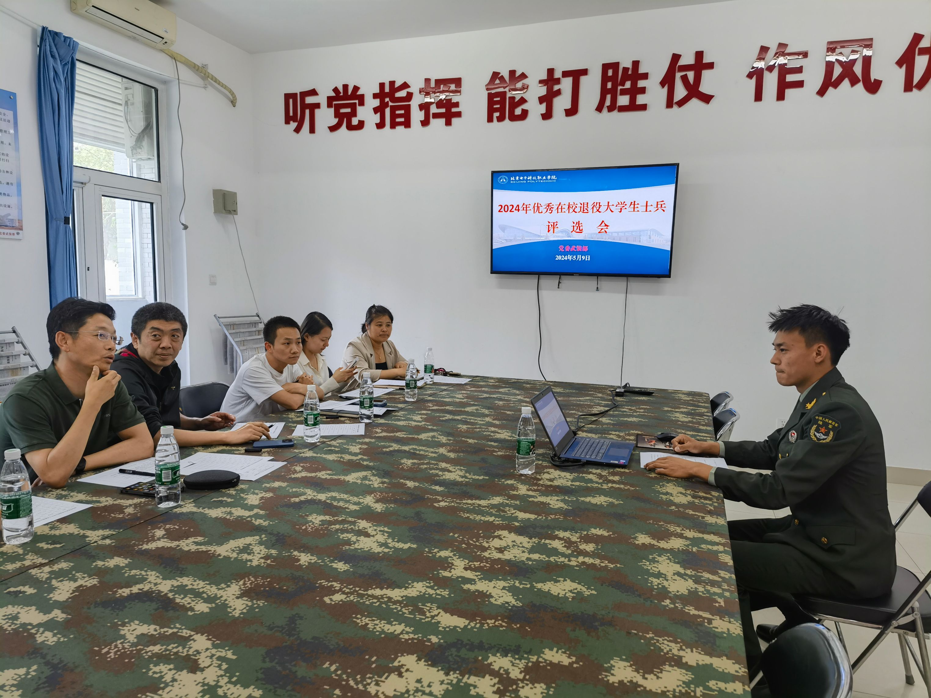 5月9日,党委武装部组织召开优秀退役大学生士兵评选答辩会。经过各二级学院推荐和初步筛选,9名退役大学生士兵参加答辩。党委武装部副部长陈曦,生物工程学院党总支副书记刘青山和各学院辅导员代表作为评委参与活动。