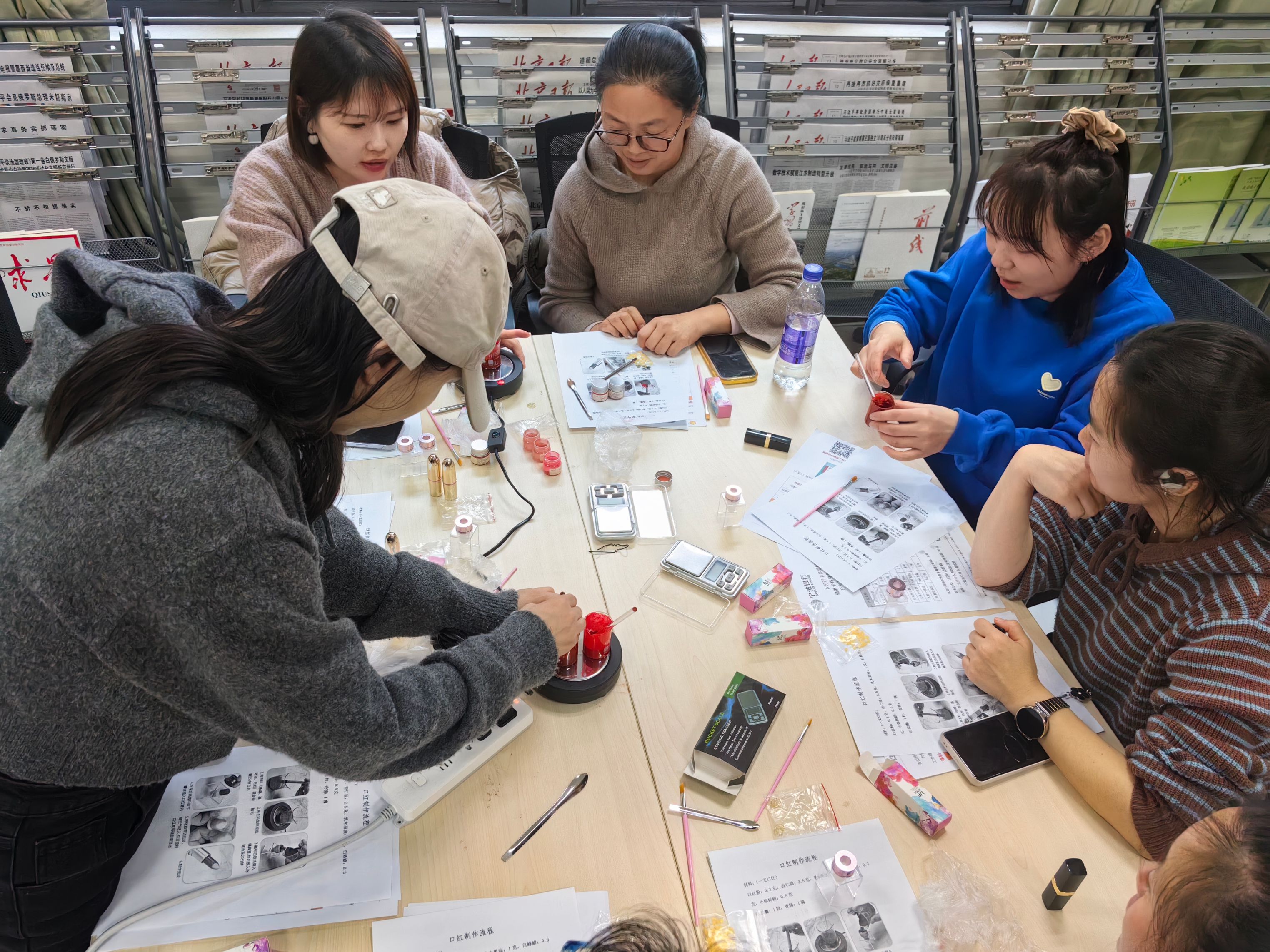 在指导老师的专业指导下,女职工们认真了解了口红原材料的选用、颜色的选择、专业工具的使用以及制作方法。随后,大家亲自动手制作个性化的口红,收获了满满的幸福感和成就感。