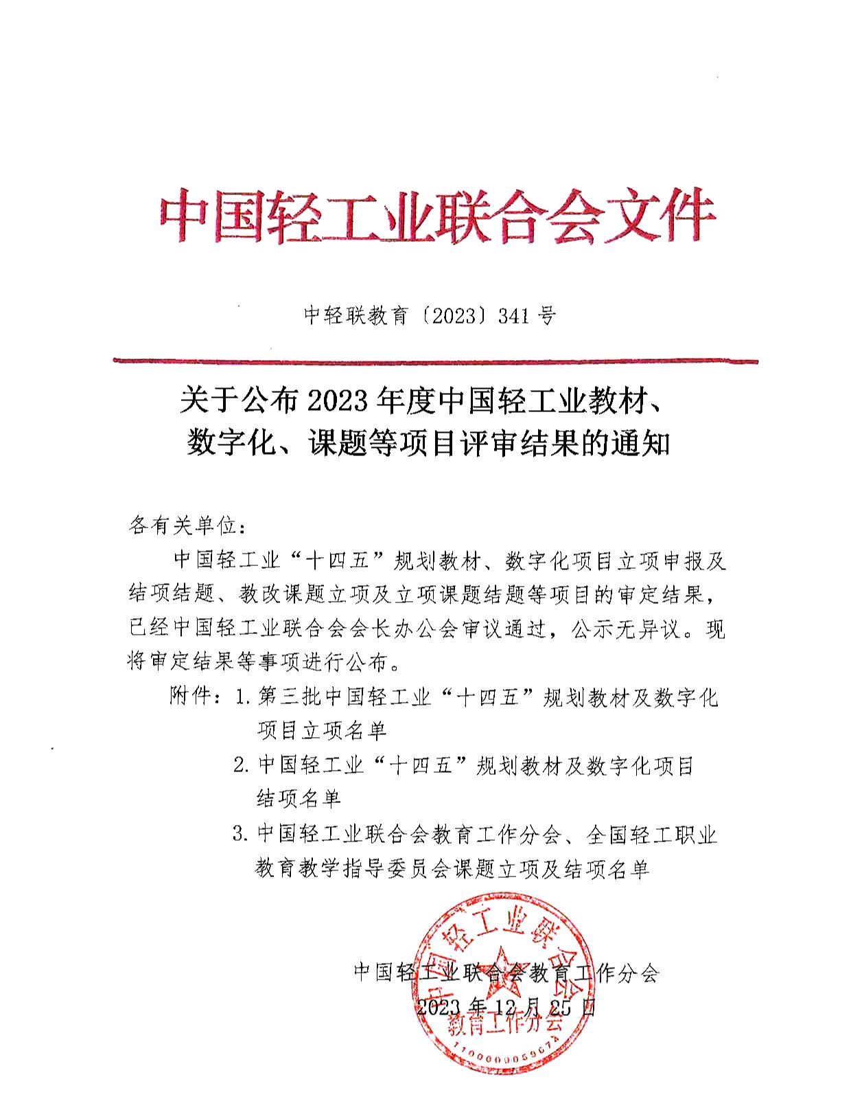 中国轻工业"十四五"规划教材和课题等项目申报及评审工作于 2023年5月启动,经中国轻工业联合会组织专家评审,共有232本教材和181个课题获得立项。该成果对深入推动生物工程学院教材建设和教学改革工作发展,提高人才培养质量具有重大意义。