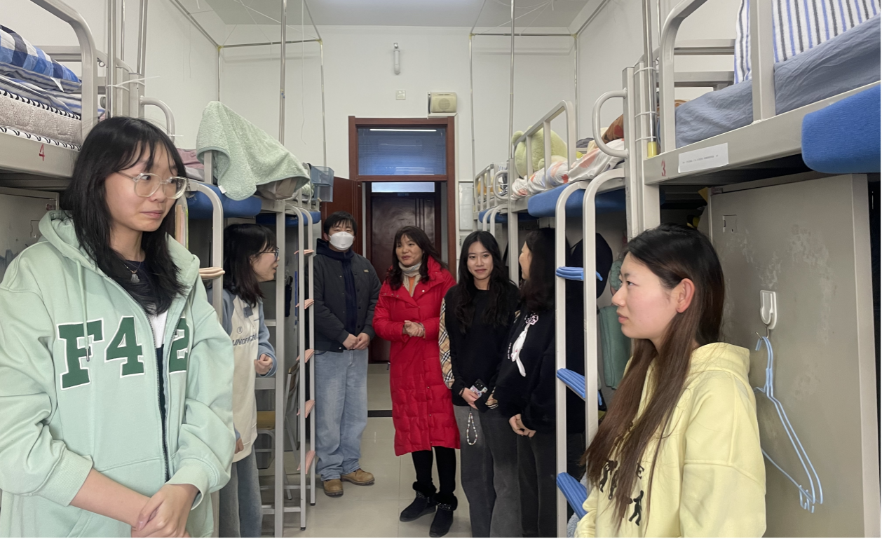 新学期伊始,为深入了解学生的思想状况和学习生活情况,切实做好新学期学生管理服务工作,2月25日,学院党总支书记殷文娟带领班子成员、学工部戴妍妍老师、学院全体辅导员及班主任前往学生宿舍,对返校生进行访谈慰问。