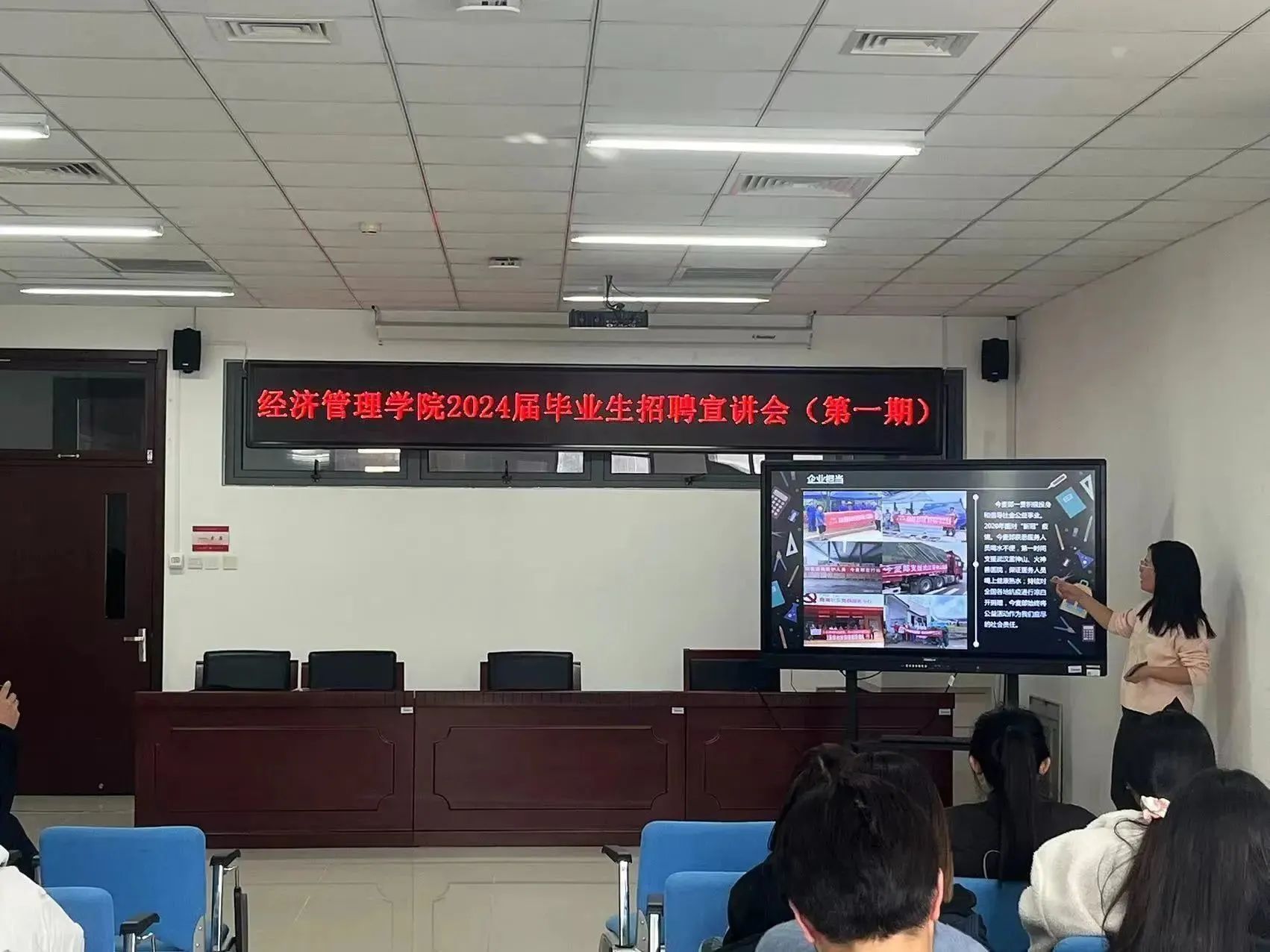 北京京电科资产管理有限公司、北京银行股份有限公司、保利物业服务股份有限公司等9家企业参加招聘宣讲会,各单位负责人分别介绍了单位情况及招聘岗位,有针对性地同有应聘意向的同学们进行充分沟通,现场解答问题。