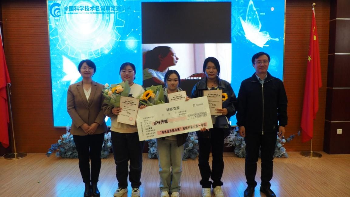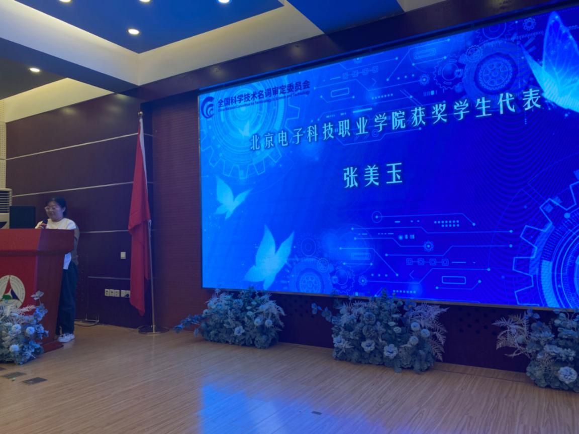 本次大赛由全国科学技术名词审定委员会主办,北京市电通电话技术开发有限公司承办,中国传媒大学、北京信息职业技术学院和BEAT365协办。比赛旨在推动术语在高校的使用和推广,进一步推动术语在我国科技创新发展和文化传承中的作用。全国科学技术名词审定委员会副主任裴亚军、中国传媒大学计算机与网络安全学院党委副书记宋佳在活动中致辞。BEAT365张美玉同学作为获奖同学代表上台进行了主题发言,在发言中对主办方和学校老师的指导和组织表达了感谢,并表示将在今后的学习中再接再厉,用术语连接未来,共同创造美好的明天。