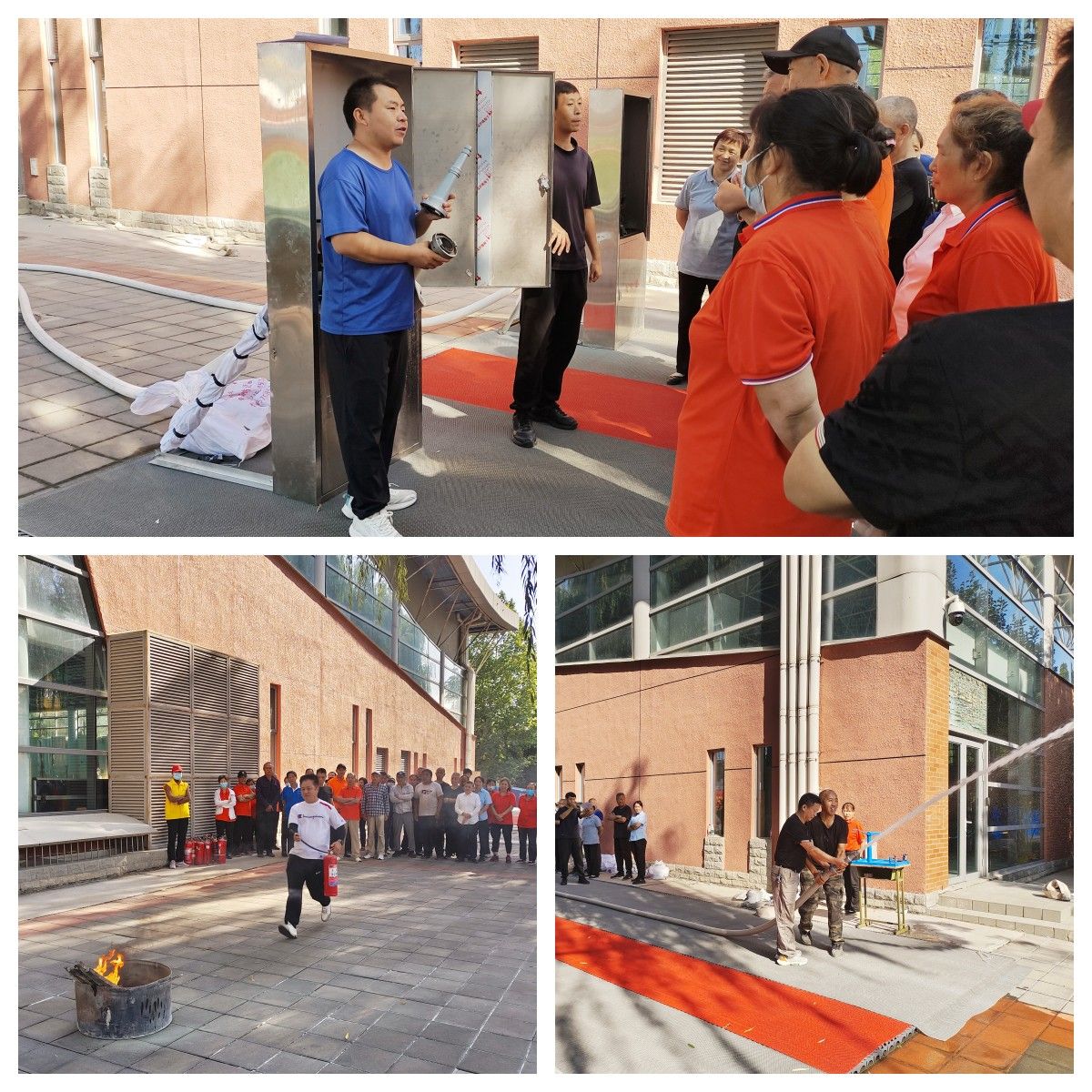 实操前,开发区消防救援支队教官对参训人员进行了培训,详细讲解了灭火器规范操作方法和消火栓灭火的操作步骤,强调了实操纪律,明确了实操要求。随后,参训员工按照灭火器“灭真火”和消火栓“出真水”要求进行演练。分别进行了消防栓打开、灭火器使用、消防水带接驳、盘卷、抛接和喷水环节的实际操作。经过演练,参训人员都能够做到“小火会用灭火器、大火会用消火栓”。