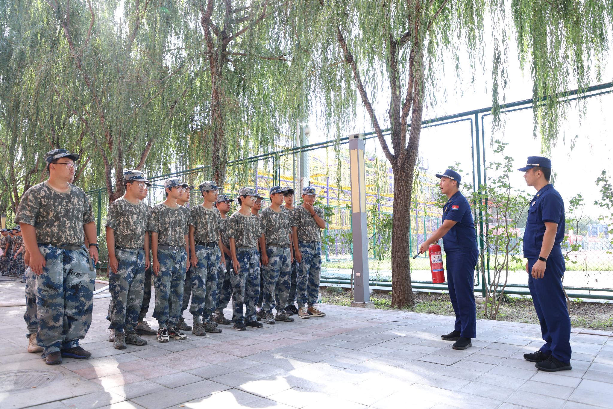 为进一步做好校园安全宣传教育工作,强化2023级新生的消防和交通安全意识,织密校园安全“防护网”,9月20日, “安全知识进军训”系列讲座活动第二讲在学校体育场开讲。本次活动邀请了开发区交通大队、博兴路消防救援站的警官们到校,分别进行了交通安全知识和消防安全知识专题讲座,全体军训师生2800余人参加讲座。